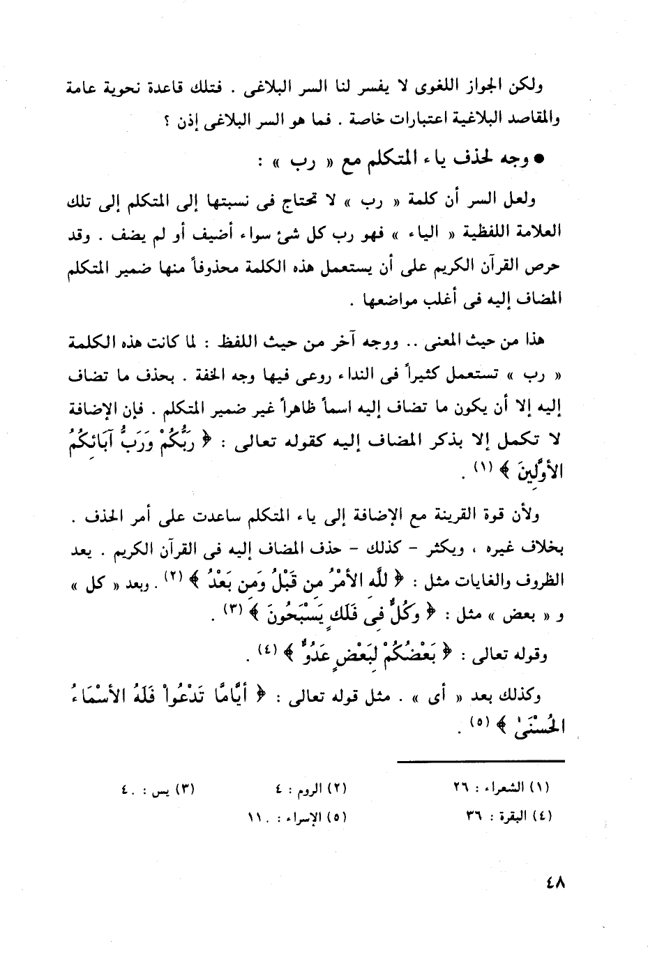 ولعل السر أن كلمة " رب " لا تحتاج في نسبتها إلى المتكلم إلى تلك