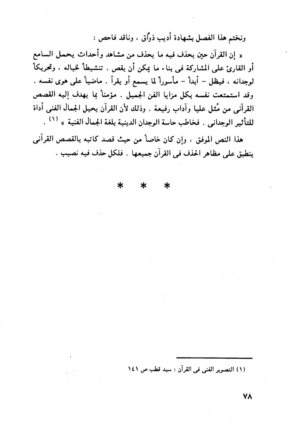 " إن القرآن حين يحذف فيه ما يحذف من مشاهد وأحداث يحمل السامع