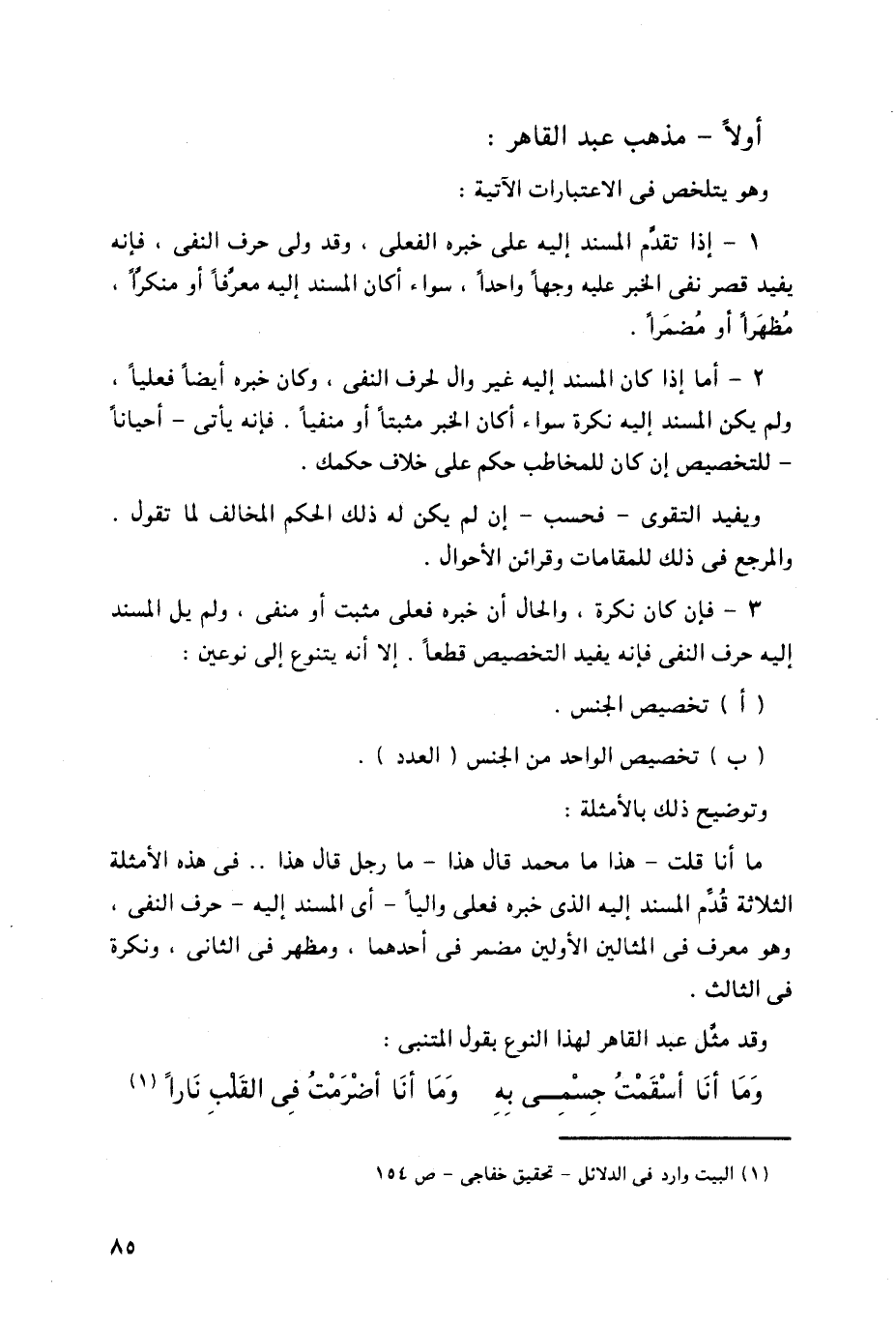 يفيد قصر نفى الخبر عليه وجهاً واحداً، سواء أكان المسند إليه معرفاً أو منكراً، مُظهَراً أو مُضمَراً.