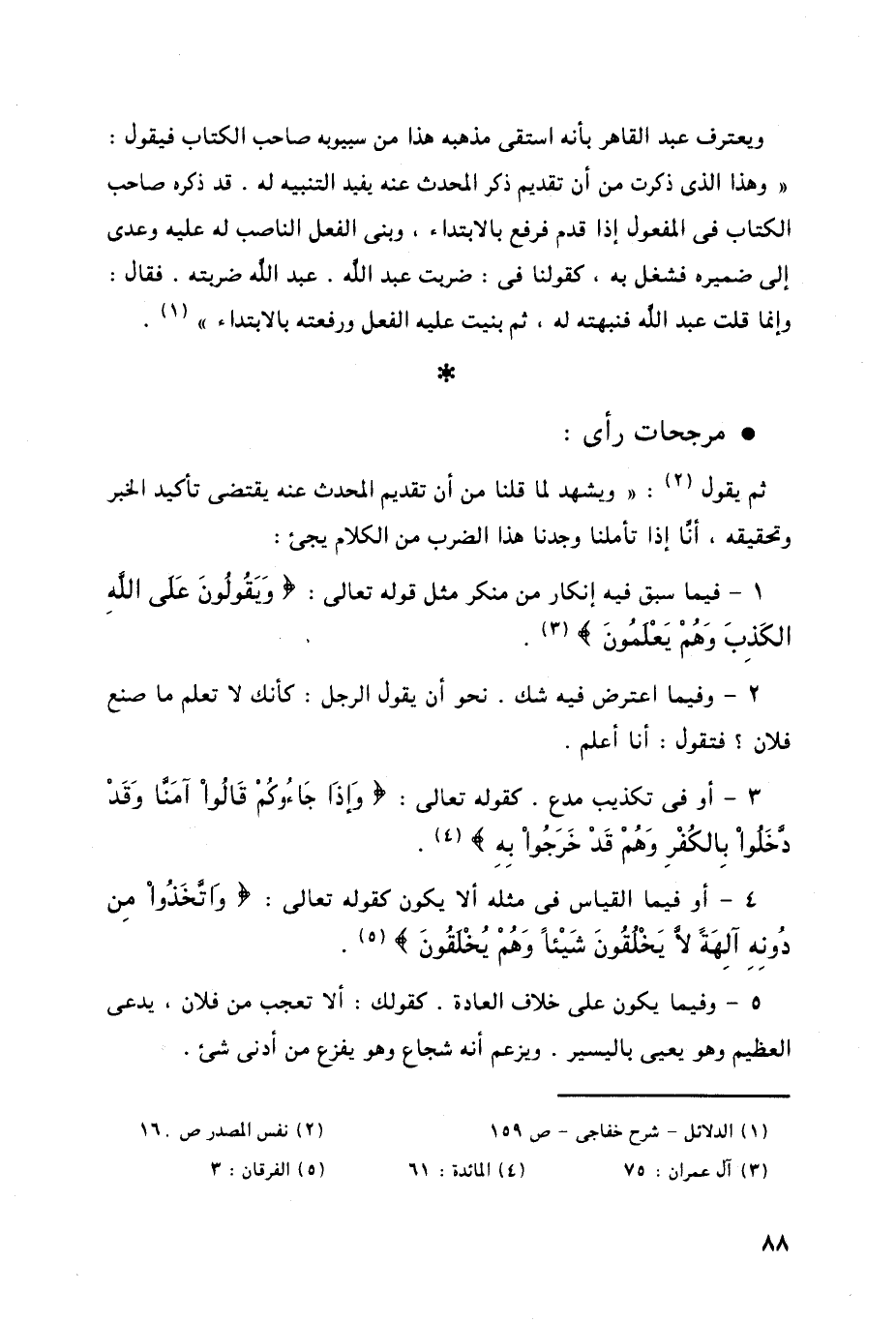 ثم يقول: " ويشهد لما قلنا من أن تقديم المحدث عنه يمتضى تأكيد الخبر