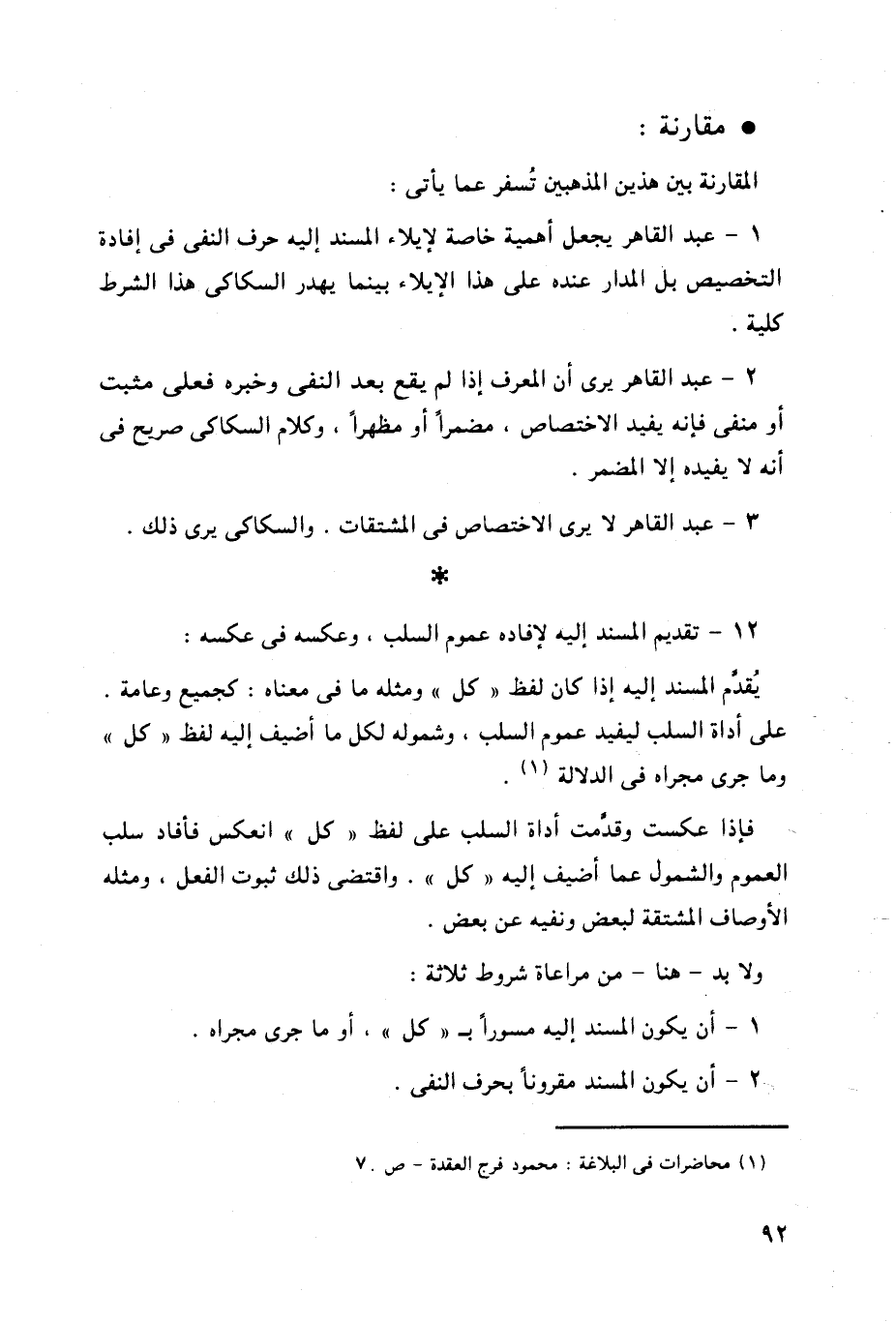 1 - عبد القاهر يجعل أهمية خاصة لإيلاء المسند إليه حرف النفي في إفادة
