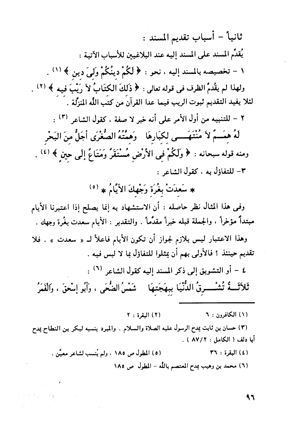 يُقدم المسند على المسند إليه عند البلاغيين للأسباب الآتية: