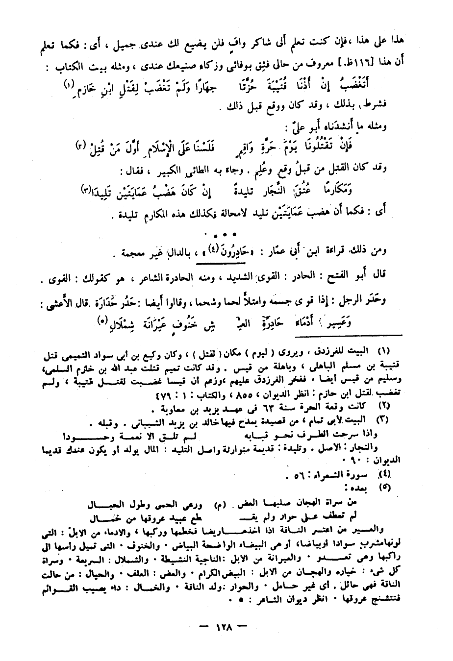 والعسير من اعتسر الناقة إذا أخذها ريضا فخطمها وركبها، والإدماء من الإبل: التي لونها مشرب سوادا أو بياضا، أو هي البيضاء الواضحة البياض. والخنوف. التي تميل رأسها إلى راكبها وهي تعدو. والعيرانة من الإبل: الناجية النشيطة. والشملال: السريعة. وسراة كل شيء: خياره والهجان من الإبل: البيض الكرام. والعض: العلف. والحيال: من حالت الناقة فهي حائل، أي غير حامل. والحوار: ولد الناقة. والخمال: داء يصيب القوائم فتتشنج عروقها. انظر ديوان الشاعر: 5.