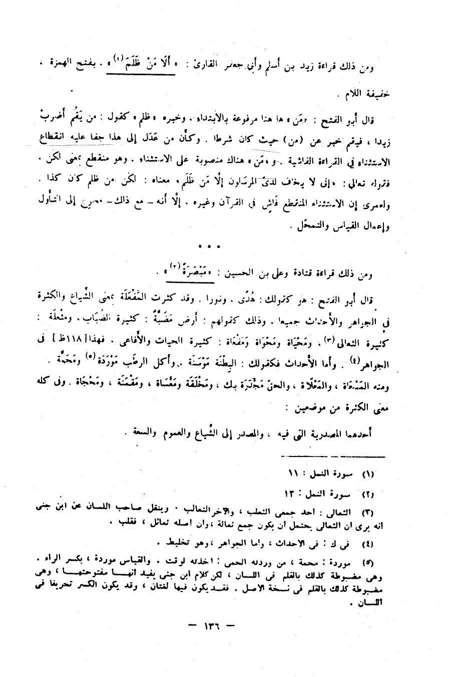 ومن ذلك قراءة زيد بن أسلم وأبي بن جعفر القارئ: "أَلَا مَنْ ظَلَم"1، بفتح الهمزة، خفيفة اللام.