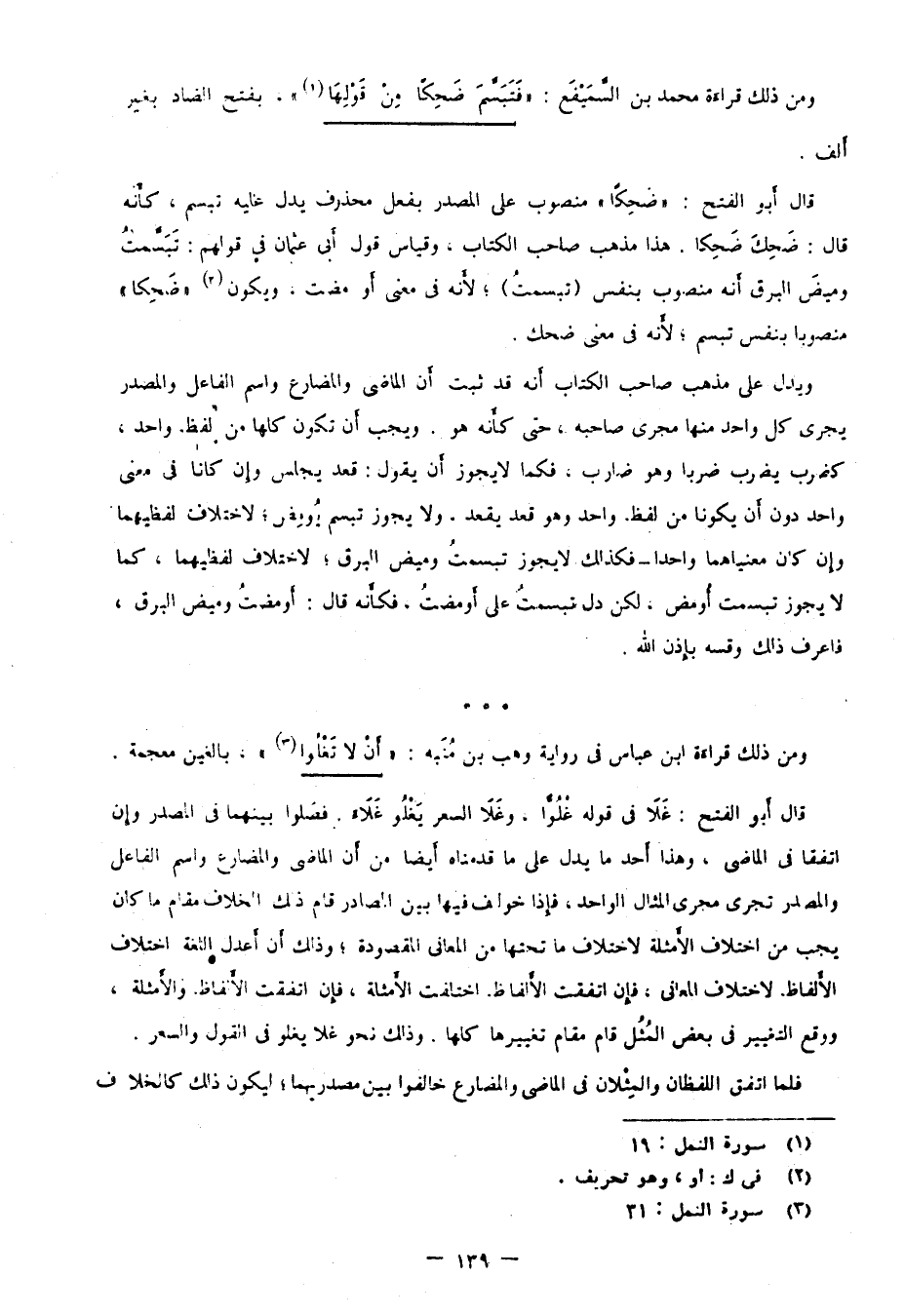 ومن ذلك قراءة محمد بن السميفع: "فَتَبَسَّمَ ضَحِكًا مِنْ قَوْلِهَا"1، بفتح الضاد بغير ألف.