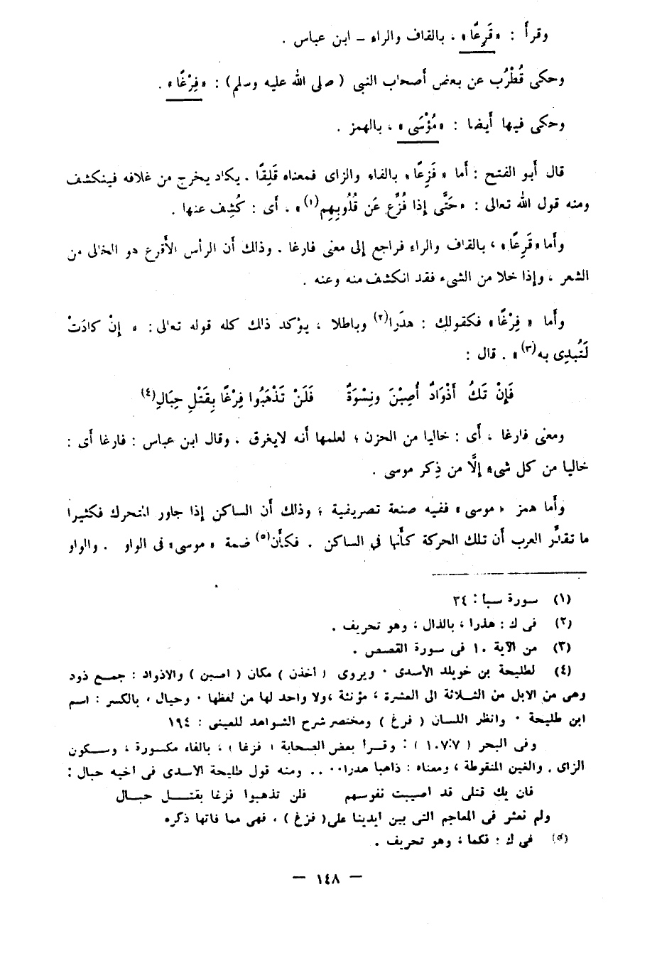 وأما "فِرْغًا" فكقولك: هدَرا2 وباطلا، يؤكد ذلك كله قوله تعالى: {إِنْ كَادَتْ لَتُبْدِي بِهِ} 3. قال: