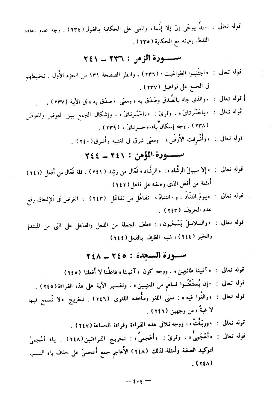 قوله تعالى: {أعجمي} ، وقرئ: "أعجمي": تخريج القراءتين "248". ياء أعجمي لتوكيد الصفة، وأمثلة لذلك "248" الأعاجم جمع أعجمي على حذف ياء النسب "248".