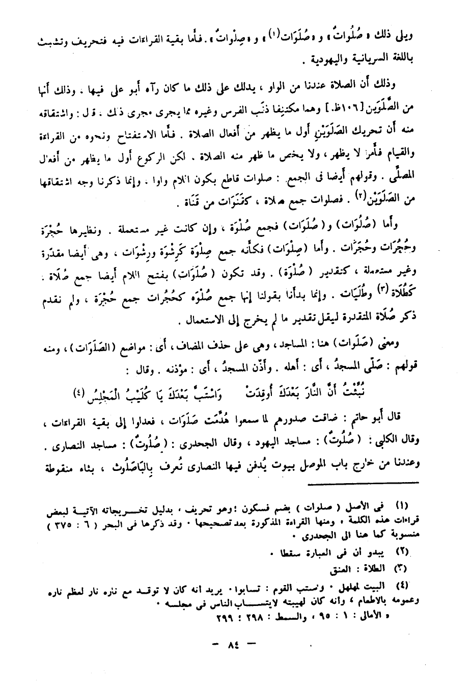 ويلي ذلك "صُلُواتٌ" و "صُلَوَات"1 و"صِلْوَاتٌ". فأما بقية القراءات فيه فتحريف وتشبث باللغة السريانية واليهودية.