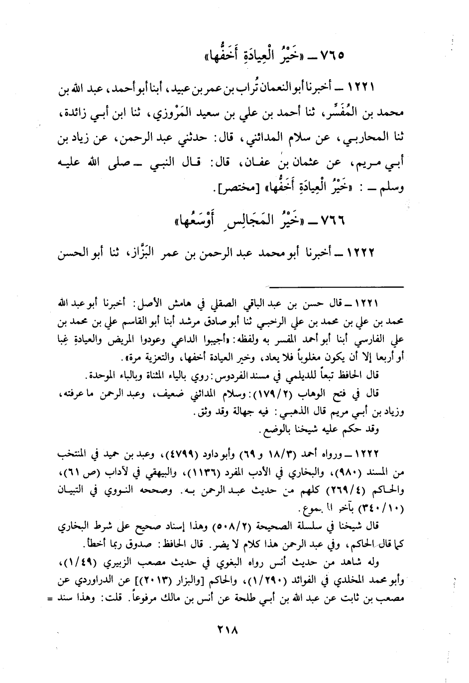 1221 - أَخْبَرَنَا أَبُو النُّعْمَانِ، تُرَابُ بْنُ عُمَرَ بْنِ عُبَيْدٍ، أبنا أَبُو أَحْمَدَ عَبْدُ اللَّهِ بْنُ مُحَمَّدِ بْنِ الْمُفَسِّرِ، ثنا أَحْمَدُ بْنُ عَلِيِّ بْنِ سَعِيدٍ الْمَرْوَزِيُّ، ثنا ابْنُ أَبِي زَائِدَةَ، ثنا الْمُحَارِبِيُّ، عَنْ سَلَّامٍ الْمَدَائِنِيِّ، قَالَ: حَدَّثَنِي عَبْدُ الرَّحْمَنِ، عَنْ زِيَادِ بْنِ أَبِي مَرْيَمَ، عَنْ عُثْمَانَ بْنِ عَفَّانَ، قَالَ: قَالَ النَّبِيُّ صَلَّى اللهُ عَلَيْهِ وَسَلَّمَ: §«خَيْرُ الْعِيَادَةِ أَخَفُّهَا» مُخْتَصَرٌ