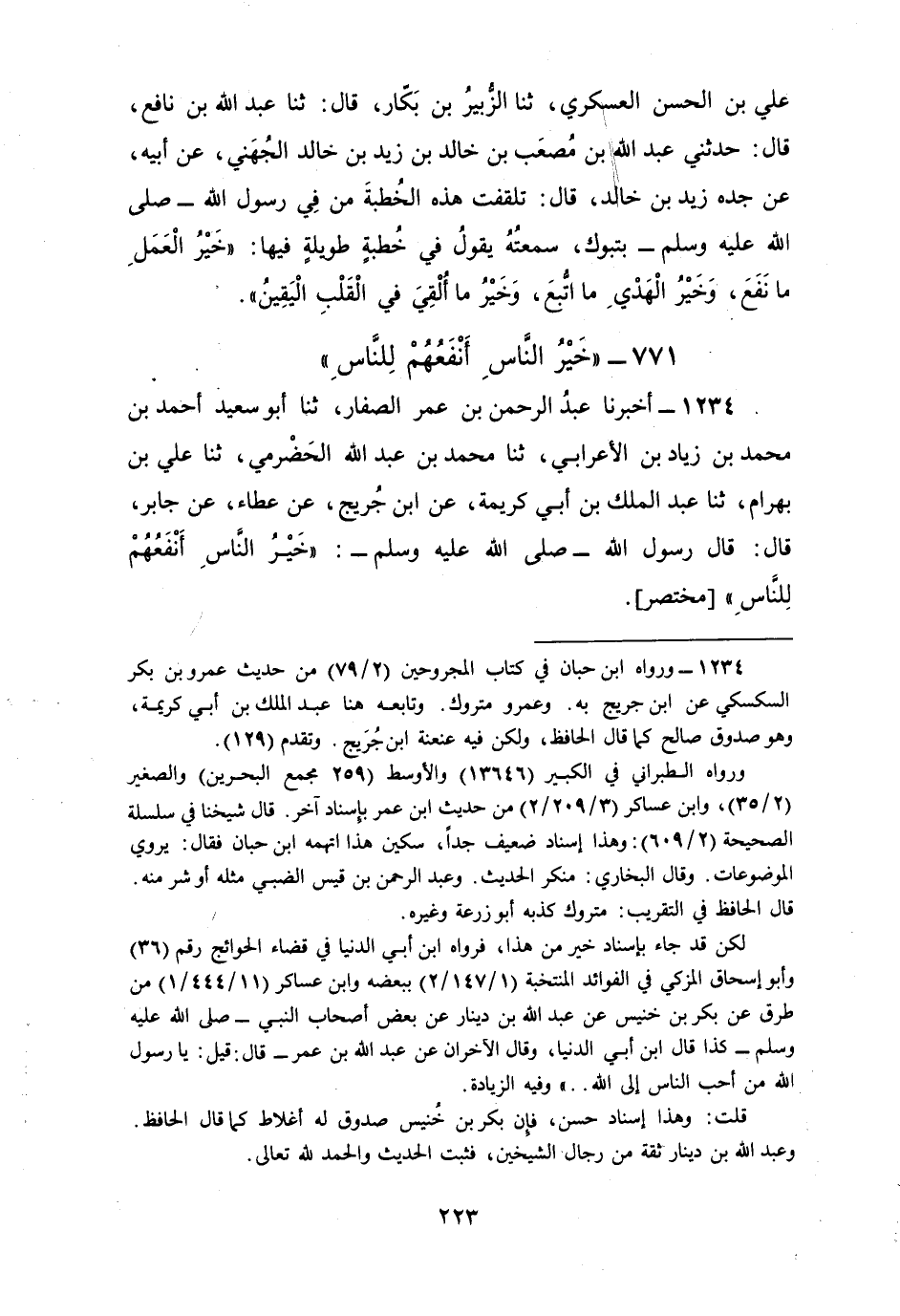 1234 - أَخْبَرَنَا عَبْدُ الرَّحْمَنِ بْنُ عُمَرَ الصَّفَّارُ، ثنا أَبُو سَعِيدٍ أَحْمَدُ بْنُ مُحَمَّدِ بْنِ زِيَادِ بْنِ الْأَعْرَابِيِّ، ثنا مُحَمَّدُ بْنُ عَبْدِ اللَّهِ الْحَضْرَمِيُّ، ثنا عَلِيُّ بْنُ بَهْرَامَ، ثنا عَبْدُ الْمَلِكِ بْنُ أَبِي كَرِيمَةَ، عَنِ ابْنِ جُرَيْجٍ، عَنْ عَطَاءٍ، عَنْ جَابِرٍ، قَالَ: قَالَ رَسُولُ اللَّهِ صَلَّى اللهُ عَلَيْهِ وَسَلَّمَ: §«خَيْرُ النَّاسِ أَنْفَعُهُمْ لِلنَّاسِ» مُخْتَصَرٌ
