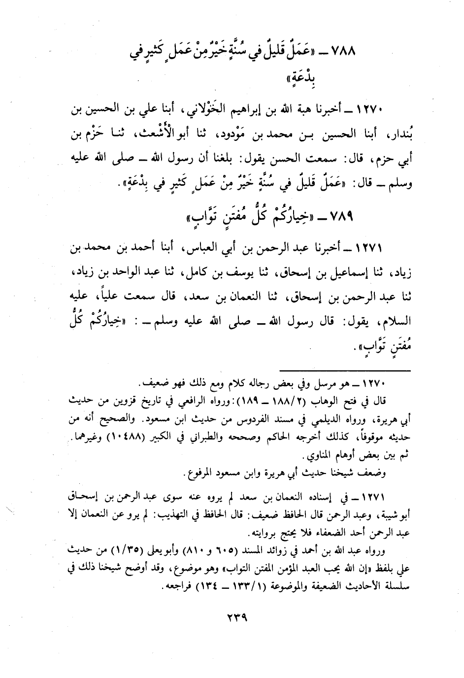1271 - أَخْبَرَنَا عَبْدُ الرَّحْمَنِ بْنُ أَبِي الْعَبَّاسِ، أبنا أَحْمَدُ بْنُ مُحَمَّدِ بْنِ زِيَادٍ، ثنا إِسْمَاعِيلُ بْنُ إِسْحَاقَ، ثنا يُوسُفُ بْنُ كَامِلٍ، ثنا عَبْدُ الْوَاحِدِ بْنُ زِيَادٍ، ثنا عَبْدُ الرَّحْمَنِ بْنُ إِسْحَاقَ، ثنا النُّعْمَانُ بْنُ سَعْدٍ، قَالَ سَمِعْتُ عَلِيًّا، عَلَيْهِ السَّلَامُ يَقُولُ: قَالَ رَسُولُ اللَّهِ صَلَّى اللهُ عَلَيْهِ وَسَلَّمَ: §«خِيَارُكُمْ كُلُّ مُفْتَنٍ تَوَّابٍ»