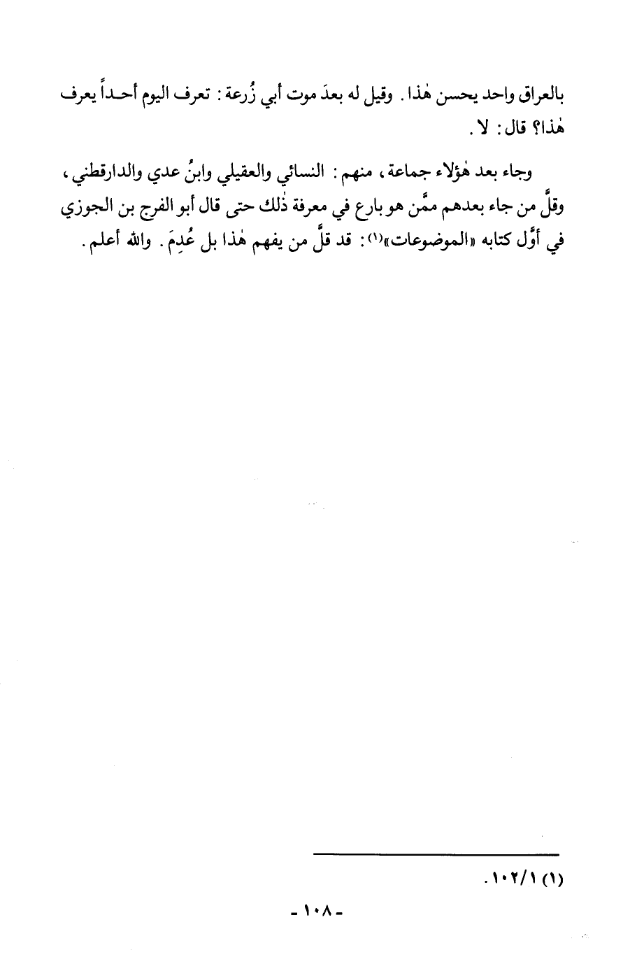 وَجَاءَ بَعْدَ هَؤُلَاءِ جَمَاعَةٌ، مِنْهُمُ النَّسَائِيُّ وَالْعُقَيْلِيُّ وَابْنُ عُدَيٍّ وَالدَّارَقُطْنِيُّ، وَقَلَّ مَنْ جَاءَ بَعْدَهُمْ مَنْ هُوَ بَارِعٌ فِي مَعْرِفَةِ ذَلِكَ حَتَّى قَالَ أَبُو الْفَرَجِ الْجَوْزِيُّ فِي أَوَّلِ كِتَابِهِ " الْمَوْضُوعَاتُ ": قَدْ قَلَّ مَنْ يَفْهَمُ هَذَا بَلْ عُدِمَ. وَاللَّهُ أَعْلَمُ.
