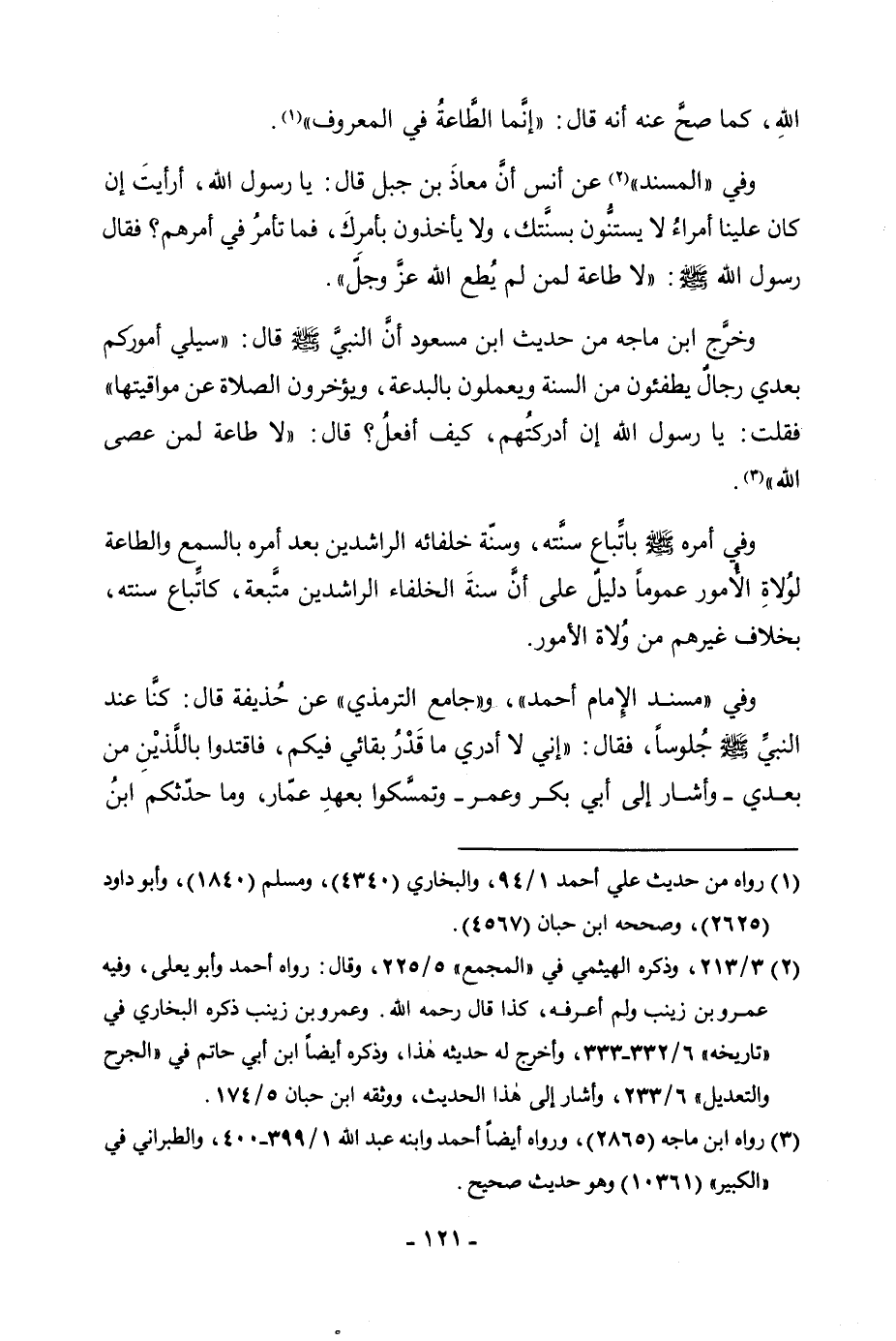 اللَّهِ، كَمَا صَحَّ عَنْهُ أَنَّهُ قَالَ: «إِنَّمَا الطَّاعَةُ فِي الْمَعْرُوفِ» .