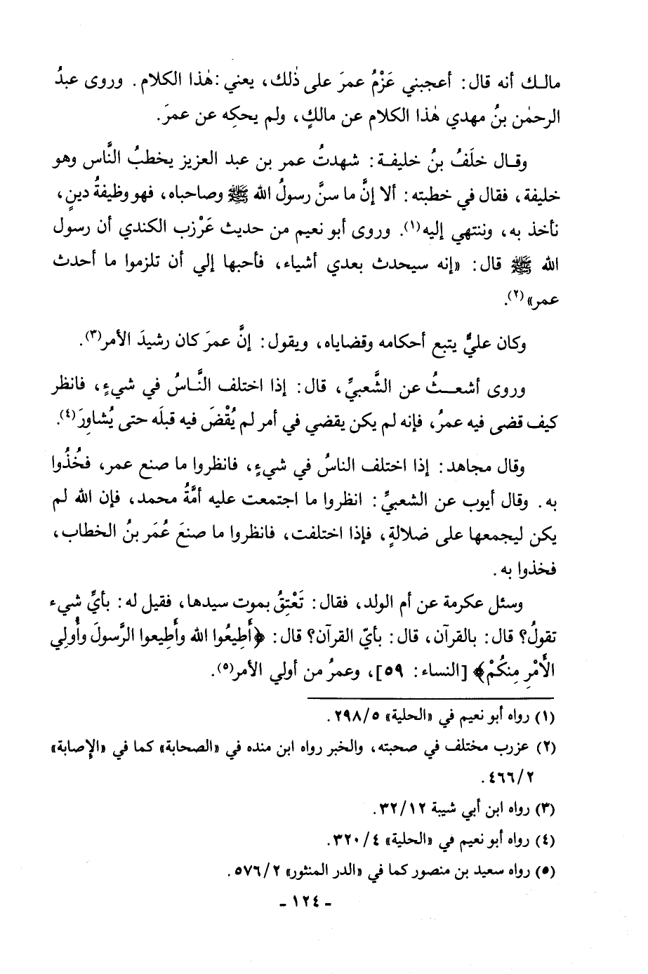 مَالِكٍ أَنَّهُ قَالَ: أَعْجَبَنِي عَزْمُ عُمَرَ عَلَى ذَلِكَ، يَعْنِي هَذَا الْكَلَامَ. وَرَوَى عَبْدُ الرَّحْمَنِ بْنُ مَهْدِيٍّ هَذَا الْكَلَامَ عَنْ مَالِكٍ، وَلَمْ يَحْكِهِ عَنْ عُمَرَ.