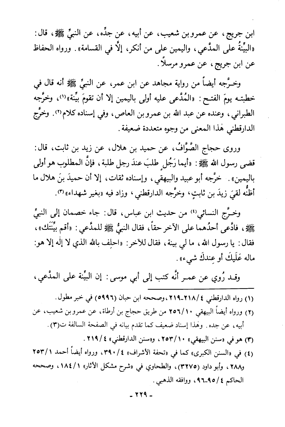 ابْنِ جُرَيْجٍ، عَنْ عَمْرِو بْنِ شُعَيْبٍ، عَنْ أَبِيهِ، عَنْ جَدِّهِ، عَنِ النَّبِيِّ صَلَّى اللَّهُ عَلَيْهِ وَسَلَّمَ، قَالَ: «الْبَيِّنَةُ عَلَى الْمُدَّعِي، وَالْيَمِينُ عَلَى مَنْ أَنْكَرَ إِلَّا فِي الْقَسَامَةِ» . وَرَوَاهُ الْحَافِظُ عَنِ ابْنِ جَرِيرٍ، عَنْ عَمْرٍو مُرْسَلًا.