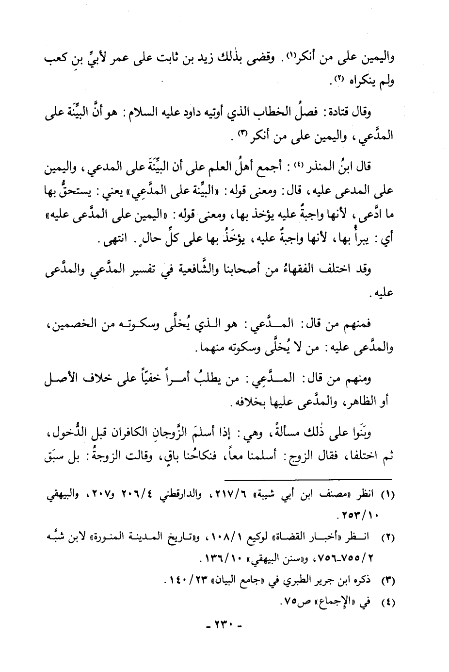 وَالْيَمِينَ عَلَى مَنْ أَنْكَرَ. وَقَضَى بِذَلِكَ زَيْدُ بْنُ ثَابِتٍ عَلَى عُمَرَ لِأُبَيِّ بْنِ كَعْبٍ وَلَمْ يُنْكِرَاهُ.