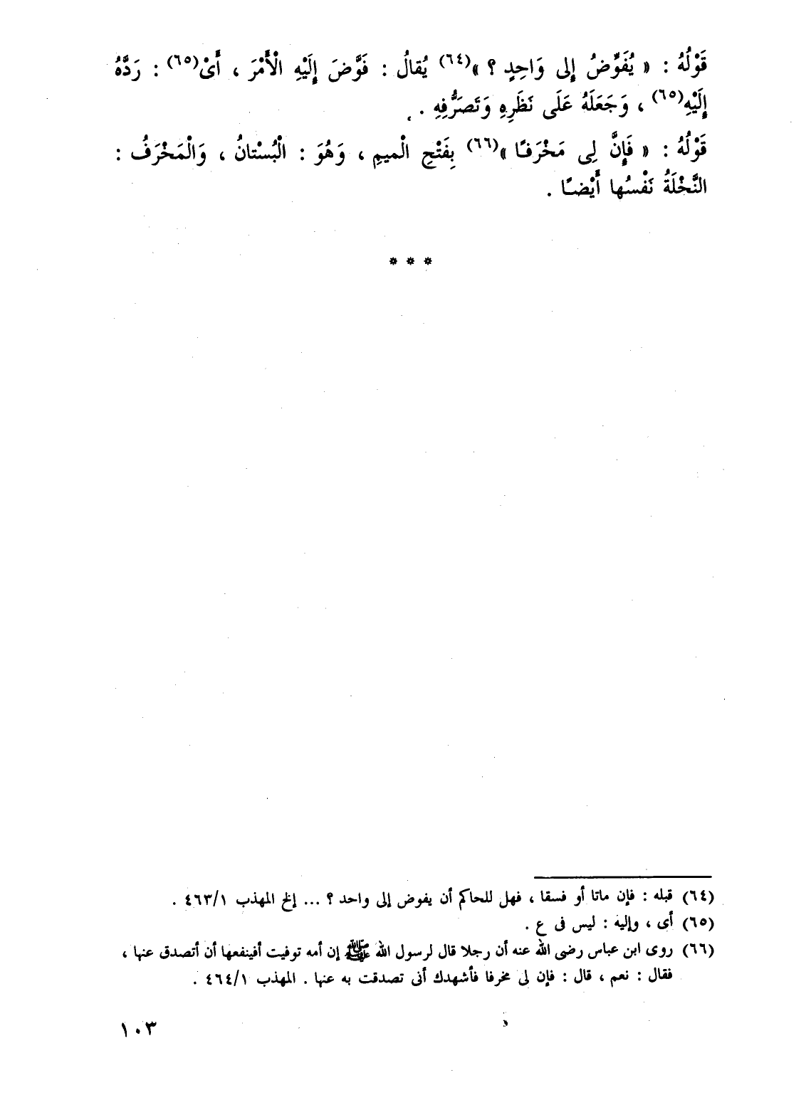 (¬66) روى ابن عباس - رضي الله عنه - أن رجلا قال لرسول الله - صلى الله عليه وسلم - إن أمه توفيت أفينفعها أن أتصدق عنها، فقال: نعم، قال: فإن لى مخرفا فأشهدك أنى تصدقت به عنها. المهذب 1/ 464.