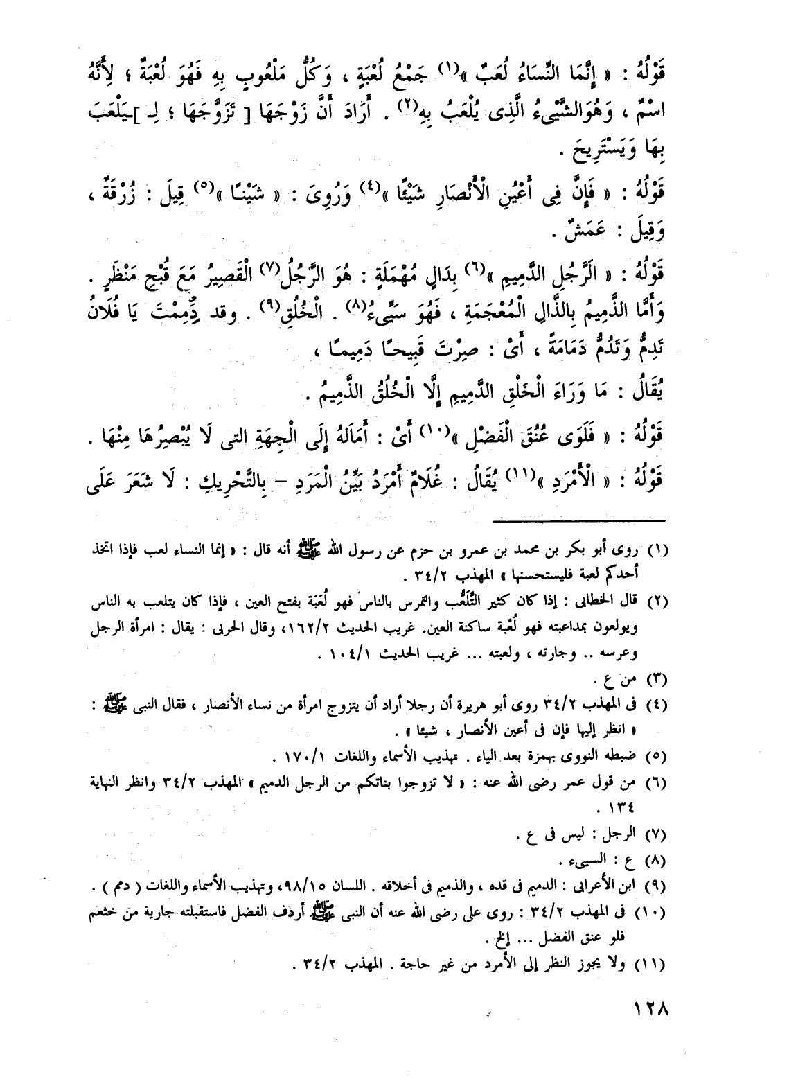 (¬10) فى المهذب 2/ 34: روى على - رضي الله عنه - أن النبى - صلى الله عليه وسلم - أردف الفضل فاستقبلته جارية من خثعم فلو عنق الفضل. . . إلخ.