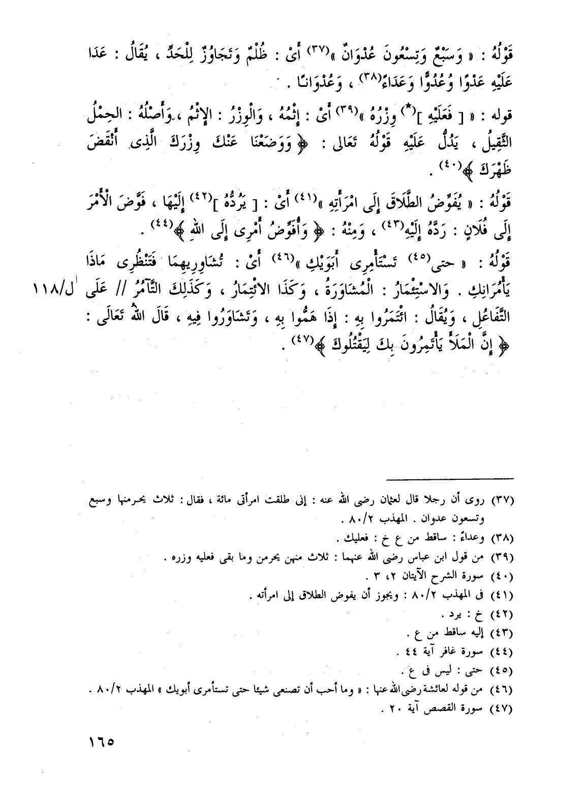 (¬37) روى أن رجلا قال لعثمان - رضي الله عنه -: إنى طلقت امرأتى مائة، فقال: ثلاث يحرمنها وسبع وتسعون عدوان. المهذب 2/ 80.