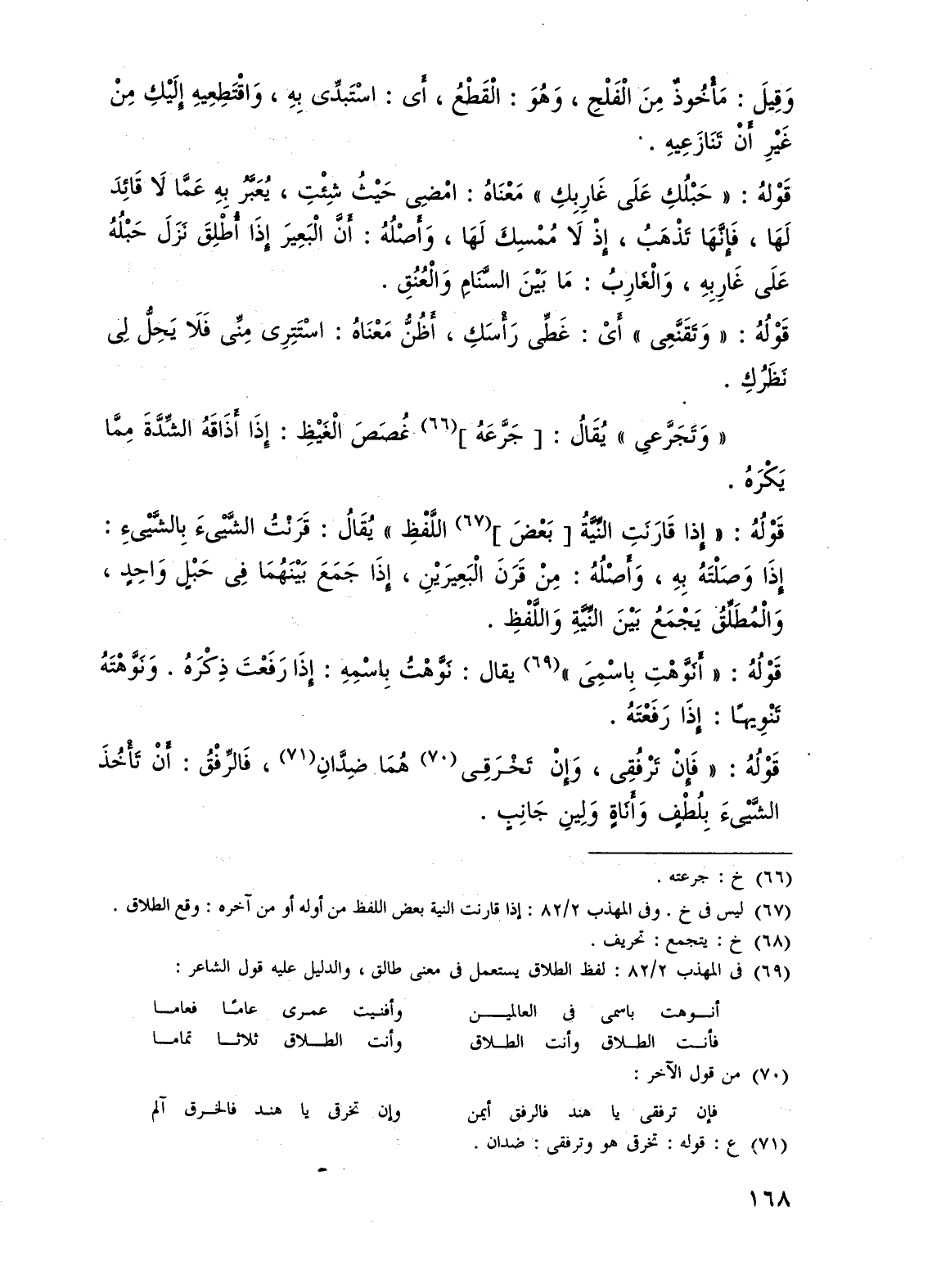 (¬69) فى المهذب 2/ 82: لفظ الطلاق يستعمل فى معنى طالق، والدليل عليه قول الشاعر: