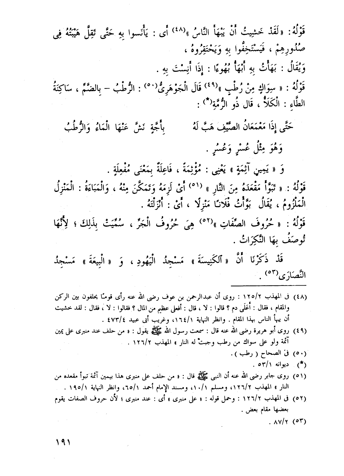 (¬51) روى جابر - رضي الله عنه - أن النبى - صلى الله عليه وسلم - قال: "من حلف على منبرى هذا بيمين آثمة تبوأ مقعده من النار" المهذب 2/ 126، ومسلم 1/ 10، ومسند الإمام أحمد 1/ 65، وانظر النهاية 1/ 195.
