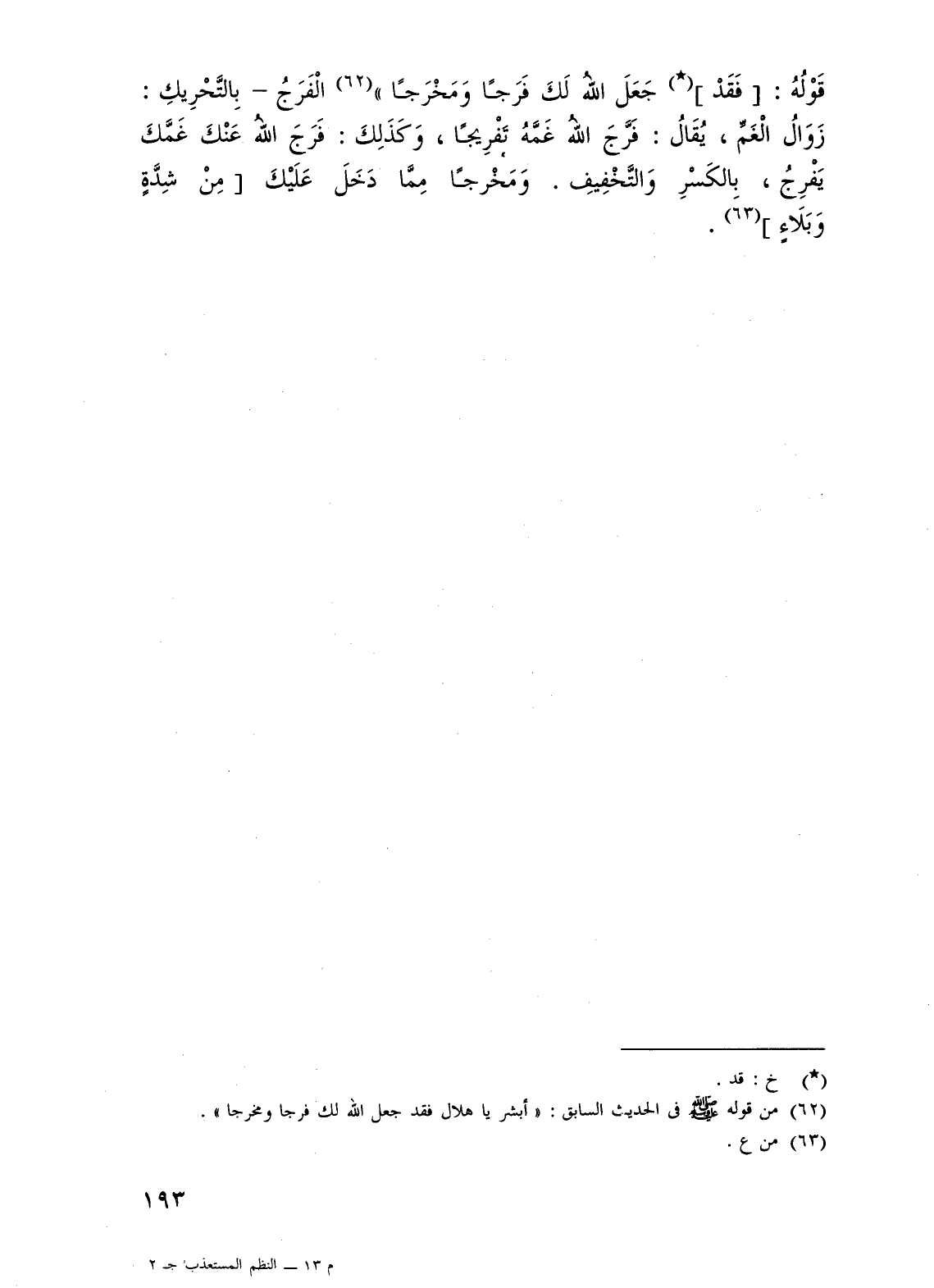(¬62) من قوله - صلى الله عليه وسلم - فى الحديث السابق: "أبشر يا هلال فقد جعل الله لك فرجا ومخرجا".