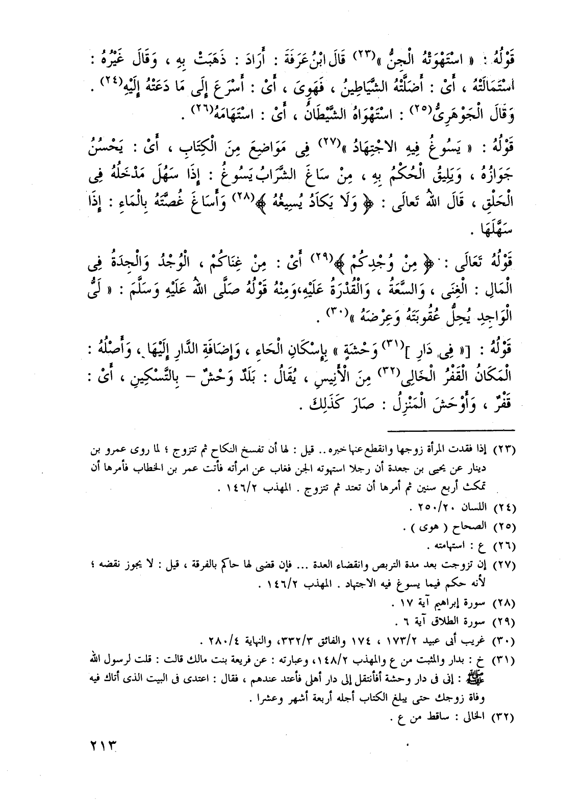 (¬31) خ: بدار والمثبت من ع والمهذب 2/ 148، وعبارته: عن فريعة بنت مالك قالت: قلت لرسول الله - صلى الله عليه وسلم -: إنى فى دار وحشة أفأنتقل إلى دار أهلى فأعتد عندهم، فقال: اعتدى فى البيت الذى أتاك فيه وفاة زوجك حتى يبلغ الكتاب أجله أربعة أشهر وعشرا.