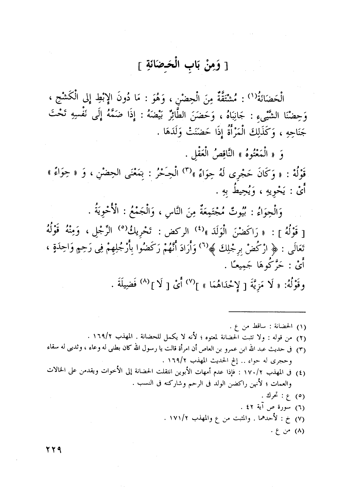(¬3) فى حديث عبد الله ابن عمرو بن العاص أن امرأة قالت يا رسول الله كان بطنى له وعاء، وثديى له سقاء وحجرى له حواء. . إلخ الحديث المهذب 2/ 169.