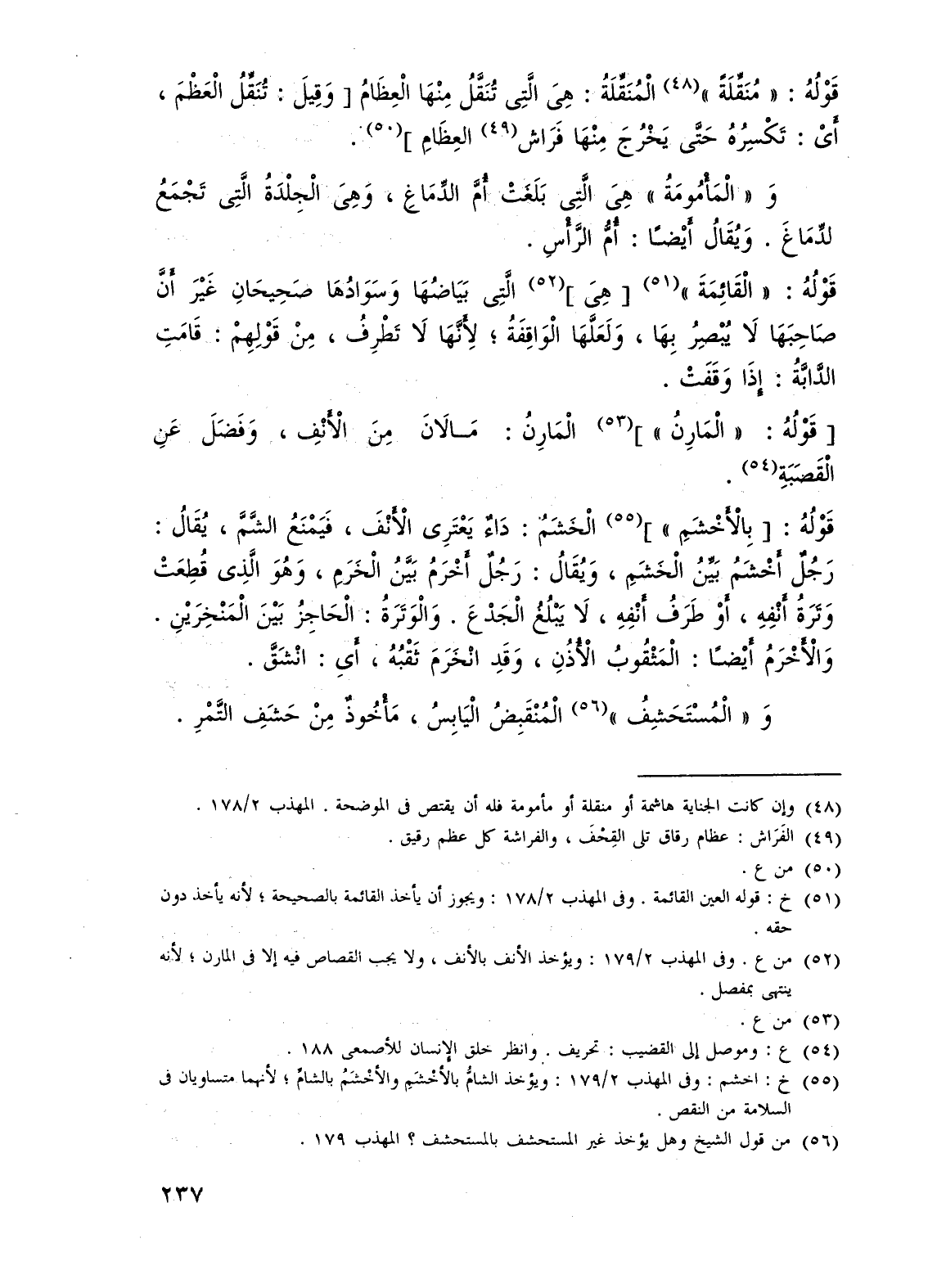 (¬48) وإن كانت الجناية هاشمة أو منقلة أو مأمومة فله أن يقتص فى الموضحة. المهذب 2/ 178.