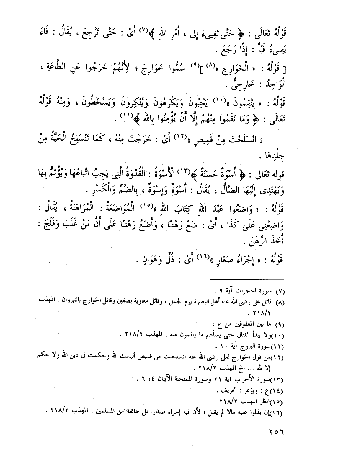 (¬12) من قول الخوارج لعلى - رضي الله عنه - انسلخت من قميص ألبسك الله وحكمت في دين الله ولا حكم إلا لله. . . الخ المهذب 2/ 218.