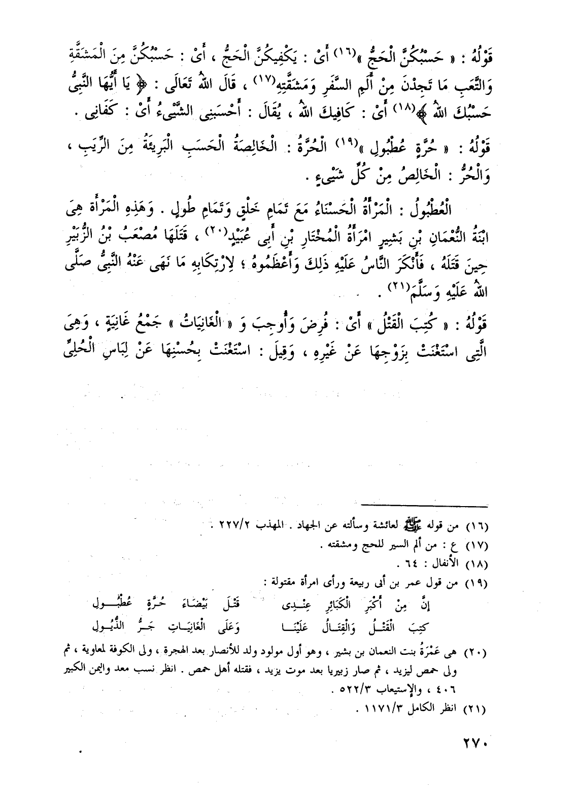 (¬16) من قوله - صلى الله عليه وسلم - لعائشة وسألته عن الجهاد. المهذب 2/ 227.