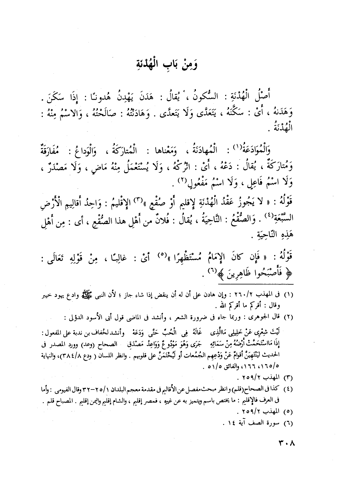 وَمِنْ بَابِ الْهُدْنَةِ