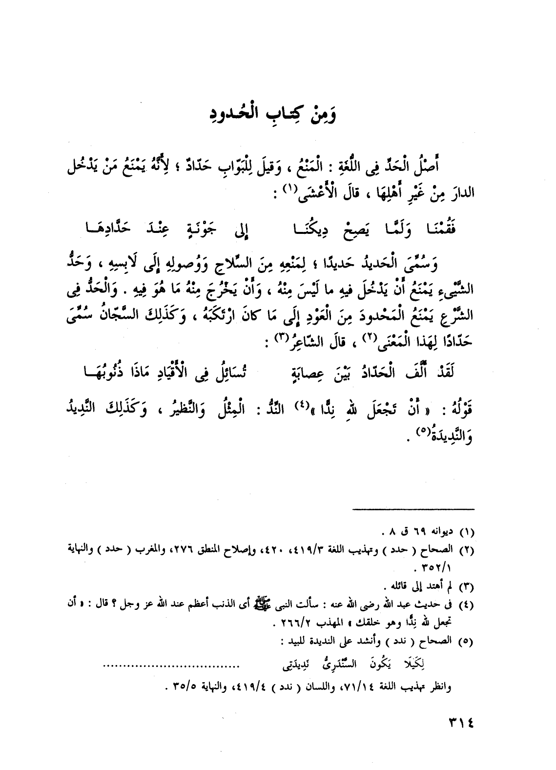 (¬2) الصحاح (حدد) وتهذيب اللغة 3/ 419، 420، وإصلاح المنطق 276، والمغرب (حدد) والنهاية 1/ 352.