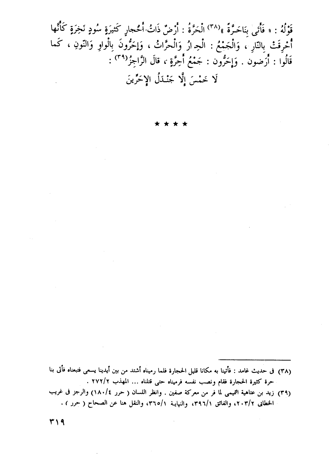 (¬39) زيد بن عتاهية التميمي لما فر من معركة صفين. وانظر اللسان (حرر 4/ 180) والرجز في غريب الخطابي 2/ 203، والفائق 1/ 396، والنهاية 1/ 365، والنقل هنا عن الصحاح (حرر).