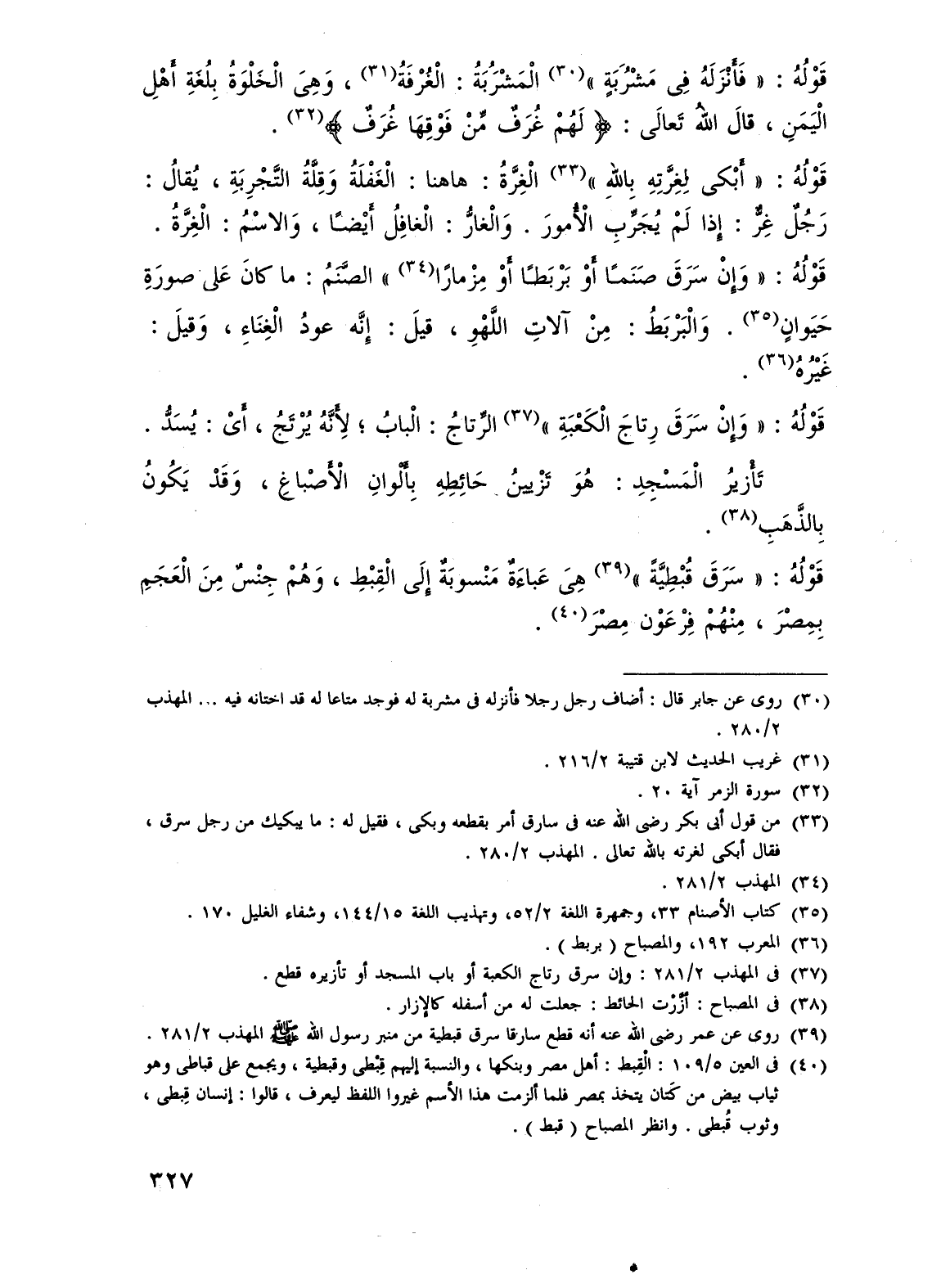 (¬33) من قول أبي بكر - رضي الله عنه - في سارق أمر بقطعه وبكى، فقيل له: ما يبكيك من رجل سرق، فقال أبكى لغرته بالله تعالى. المهذب 2/ 280.