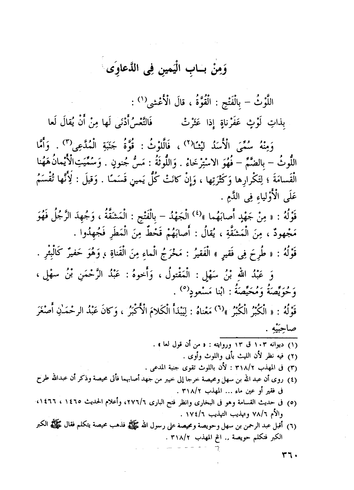 (¬5) في حديث القسامة وهو في البخاري وانظر فتح الباري 6/ 276، وأعلام الحديث 1465، 1466 , والأم 6/ 78 وتهذيب التهذيب 6/ 174.
