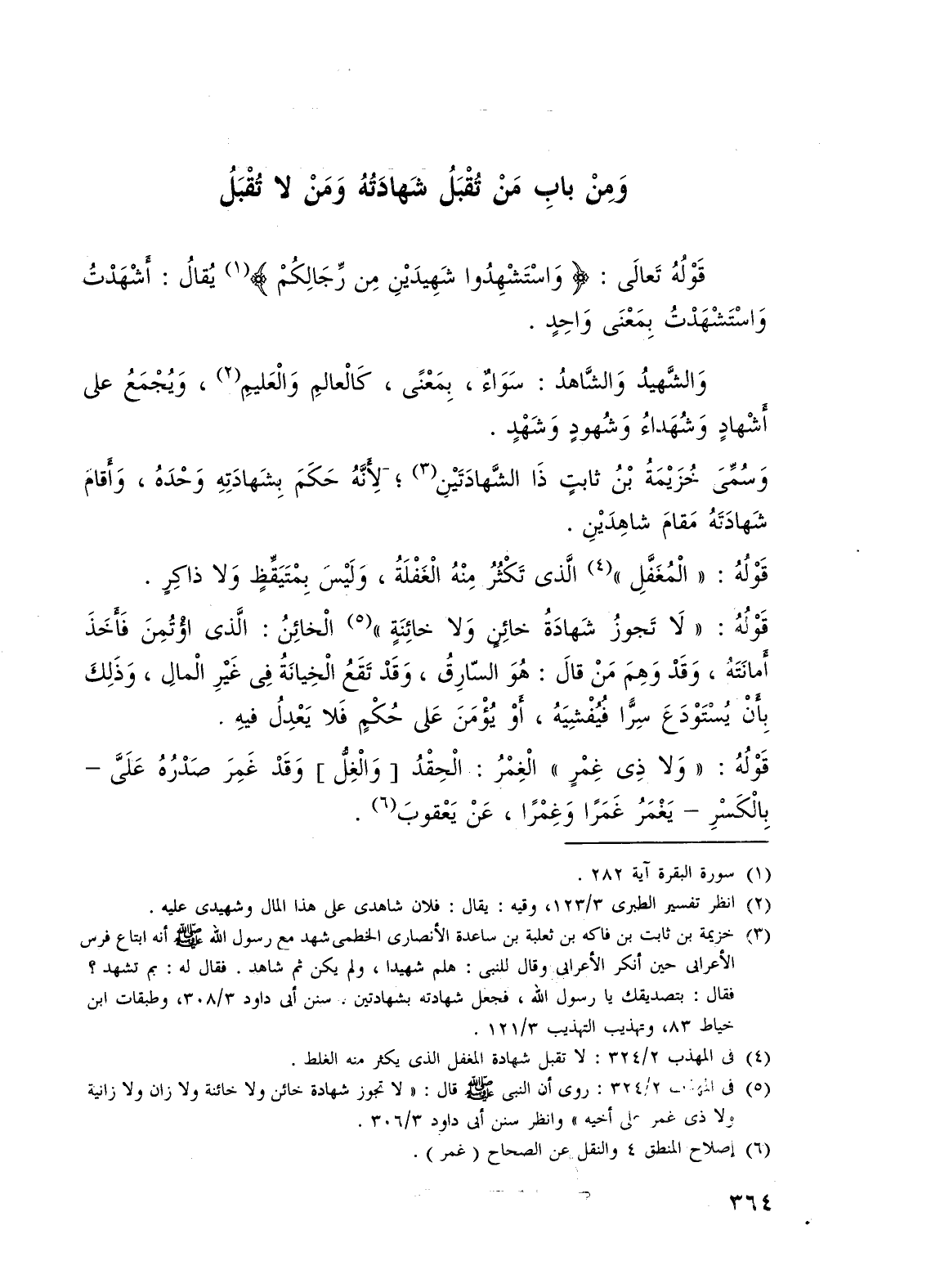 وَمِنْ بابِ مَنْ تُقْبَلُ شَهادَتُهُ وَمَن لا تُقْبَلُ