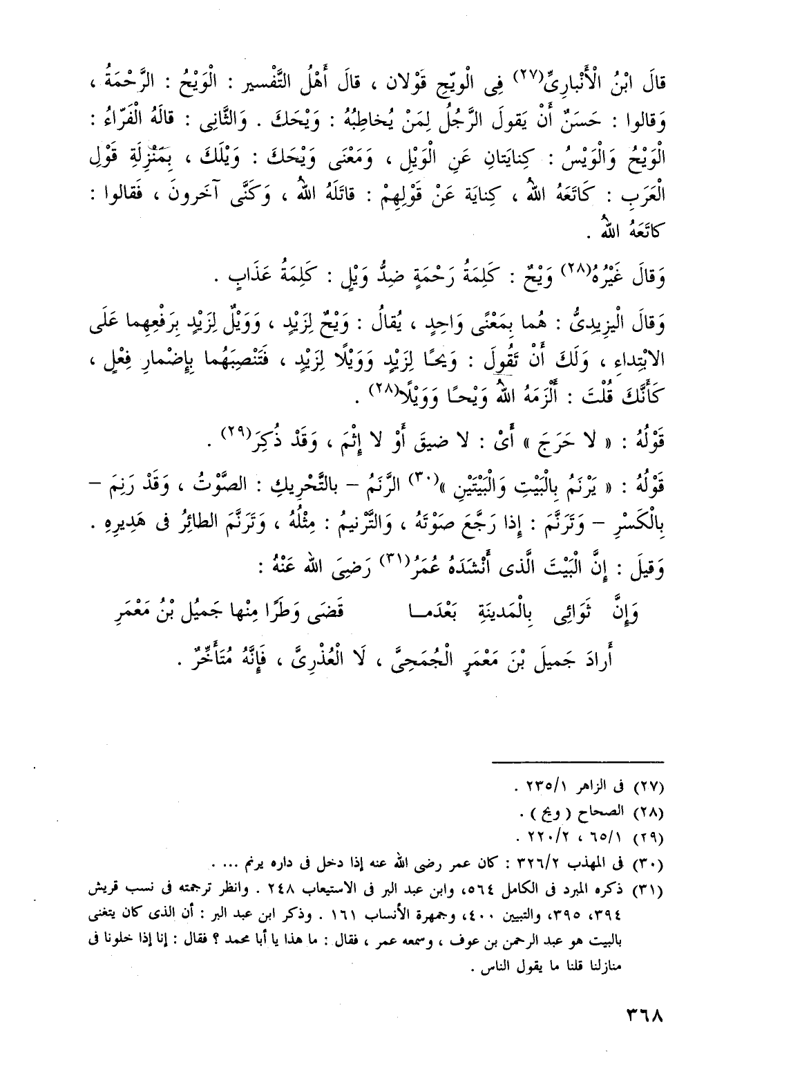 وَقالَ غَيْرُهُ (28) وَيْحٌ: كَلِمَةُ رَحْمَةٍ ضِدُّ وَيْلٍ: كَلِمَةُ عَذَابٍ.