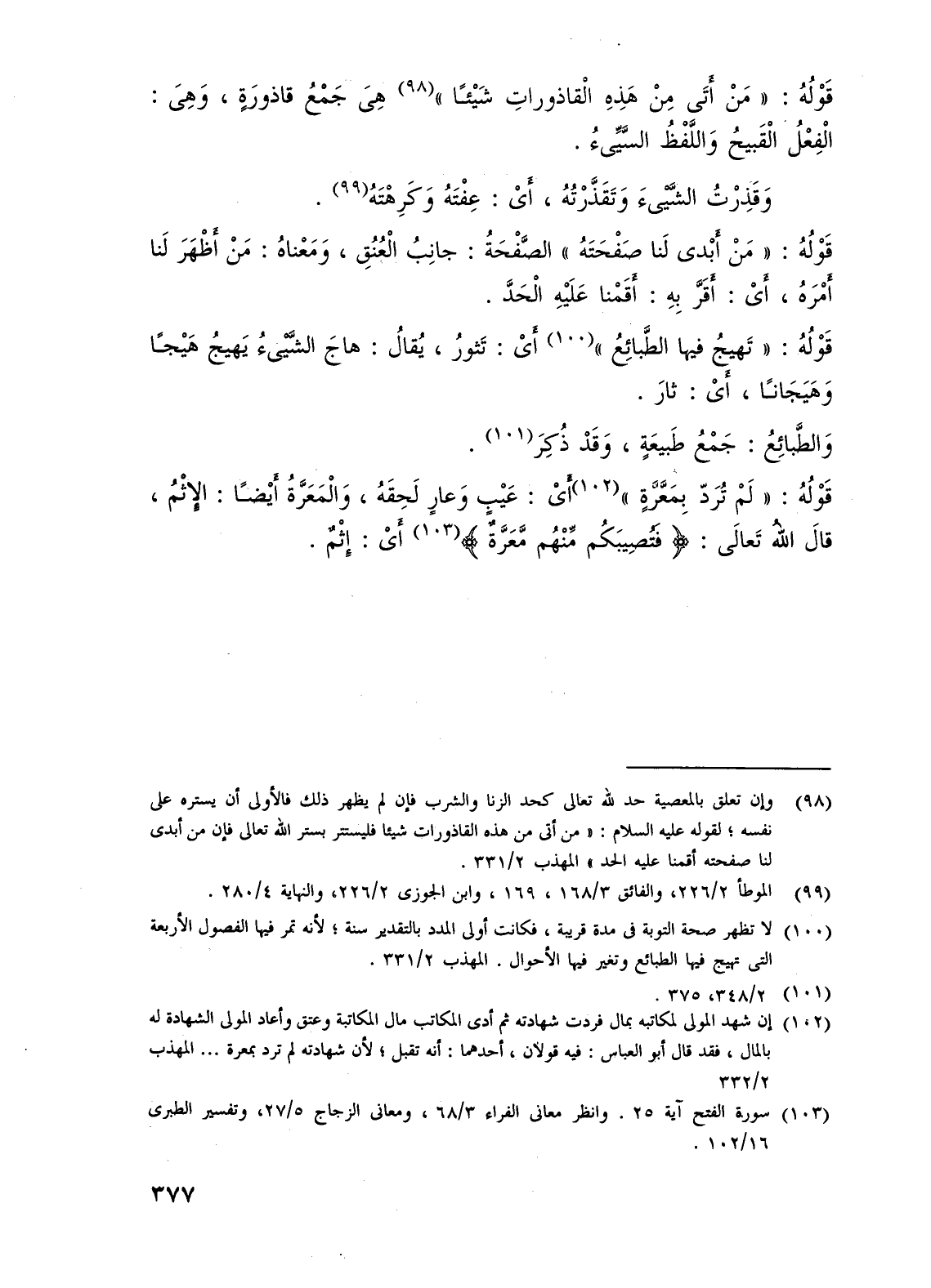 قَوْلُهُ: "مَنْ أَتَى مِنْ هَذِهِ الْقاذوراتِ شَيْئًا" (¬98) هِىَ جَمْعُ قاذورَة، وَهِيَ: الْفِعْلُ الْقَبيحُ وَاللَّفْظُ السَّيِّىءُ.