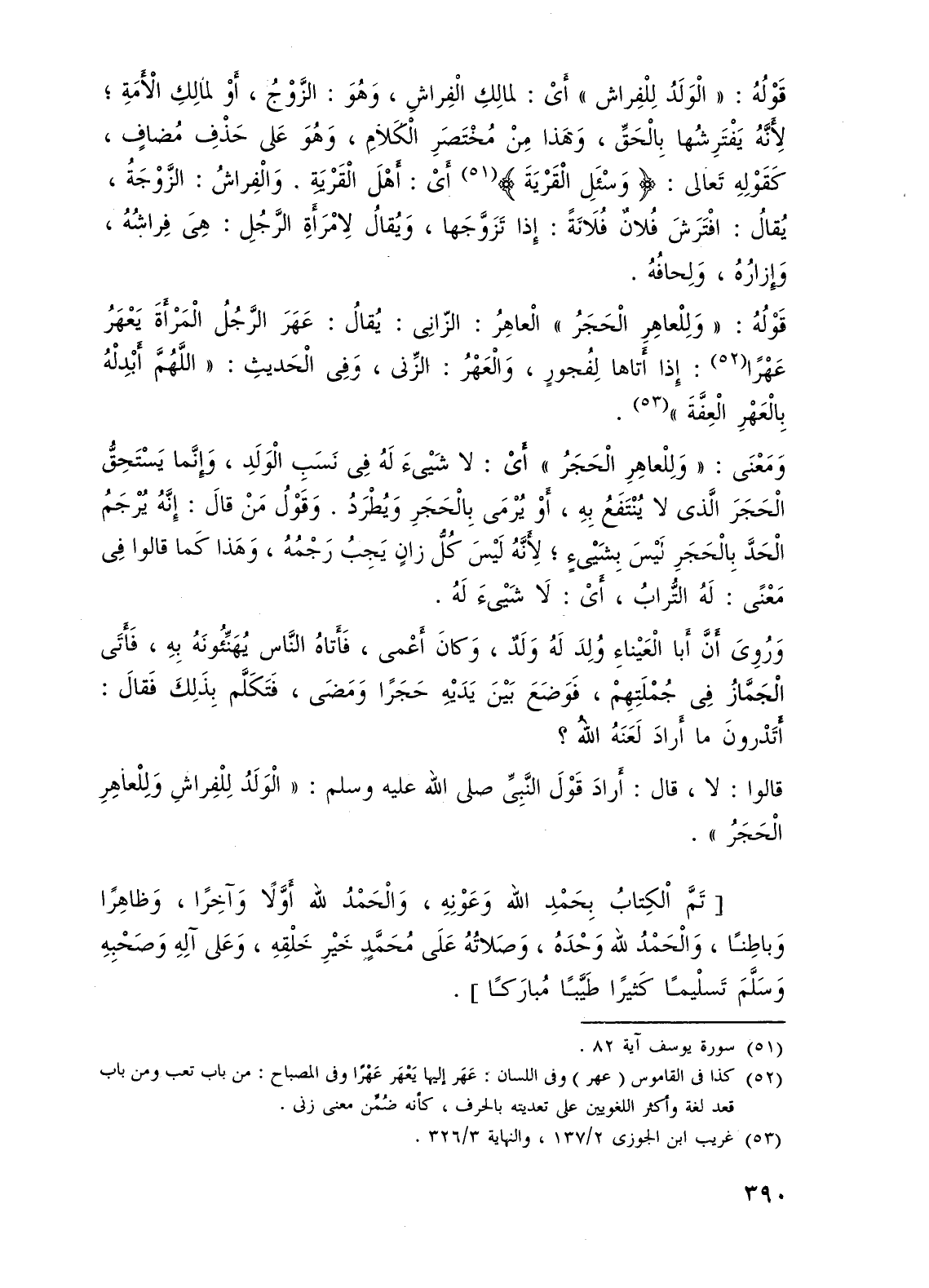 [تَمَّ الكِتابُ بِحَمْدِ اللهُ وَعَوْنِهِ، وَالْحَمْدُ لله أَوَّلًا وَآخِرًا، وَظاهِرًا وَباطِنًا، وَالْحَمْدُ لله وَحْدَهُ، وَصَلاتُهُ عَلَى مُحَمَّدٍ خَيْرِ خَلْقِهِ، وَعَلى آلِهِ وَصَحْبِهِ وَسَلَّمَ تَسلْيمًا كَثيرًا طَيَّبًا مُبارَكًا].