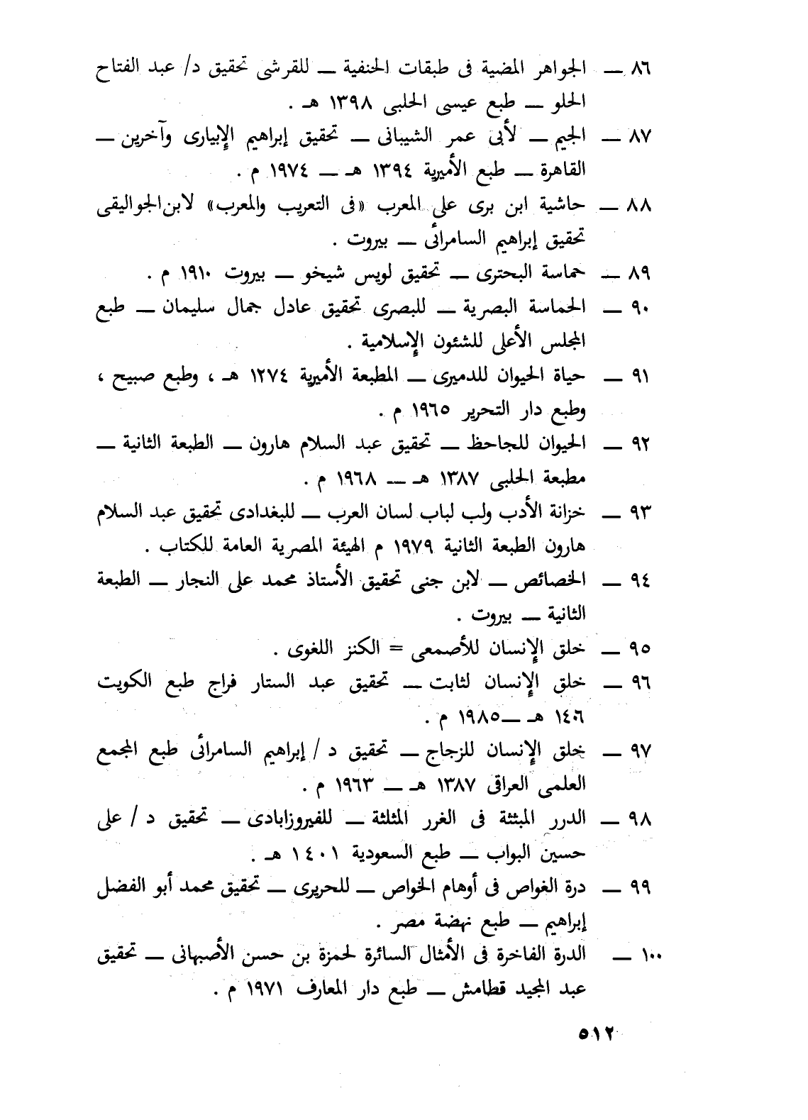 91 - حياة الحيوان للدميرى -المطبعة الأميرية 1274 هـ، وطبع صبيح، وطبع دار التحرير 1965 م.