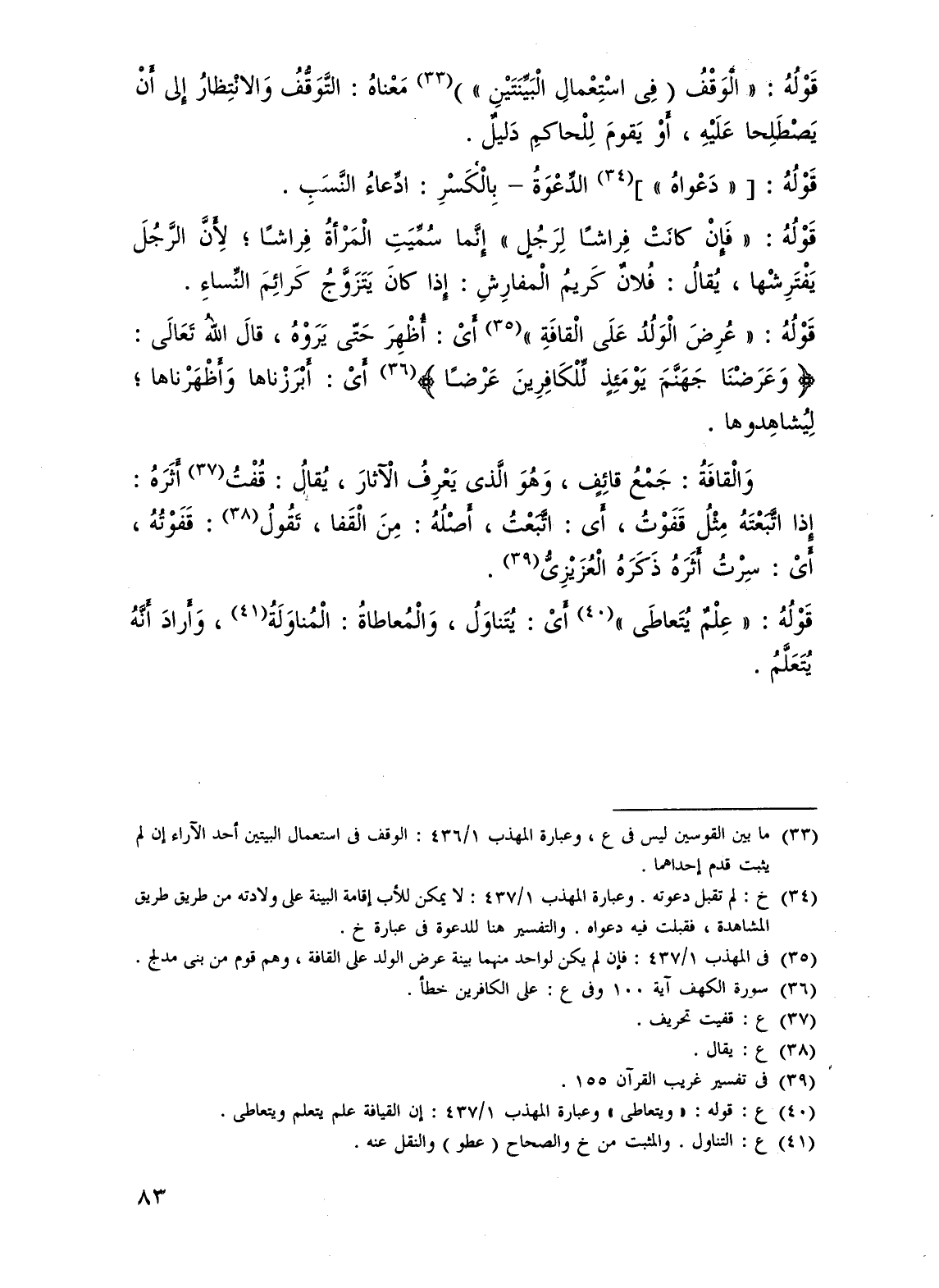 (¬35) فى المهذب 1/ 437: فإن لم يكن لواحد منهما بينة عرض الولد على القافة، وهم قوم من بنى مدلج.