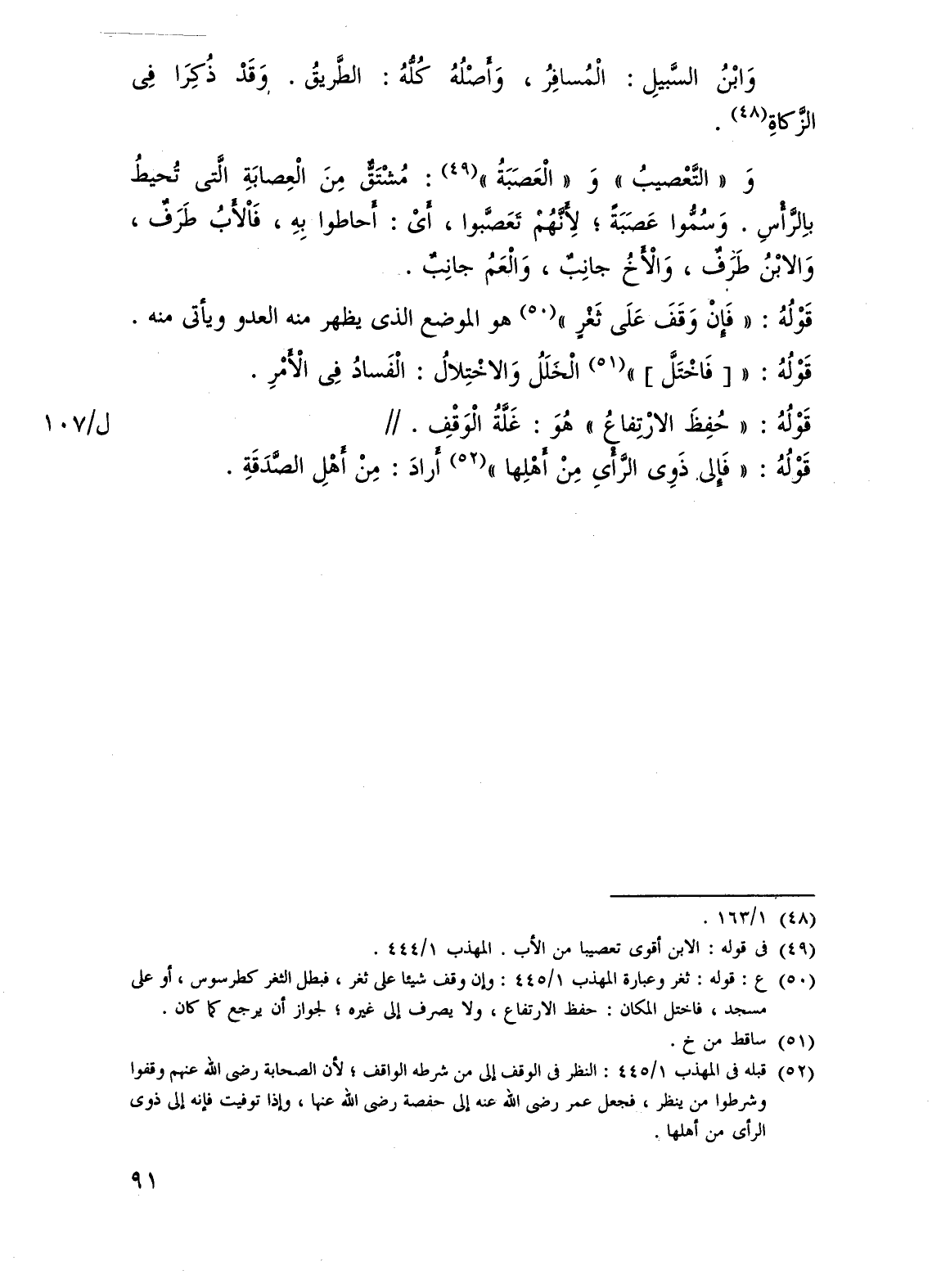وَ"التَّعْصيبُ" وَ"الْعَصَبَةُ" (¬49): مُشْتَقٌّ مِنَ الْعِصابَةِ الَّتى تُحيطُ باِلرَّأْسِ. وَسُمُّوا عَصَبَةً؛ لِأَنَّهُمْ تَعَصَّبوا، أَىْ: أَحاطوا بِهِ، فَاْلأَبُ طَرَفٌ، وَالابْنُ طَرفٌ، وَالْأَخُ جانِبٌ، وَالْعَمُ جانِبٌ.