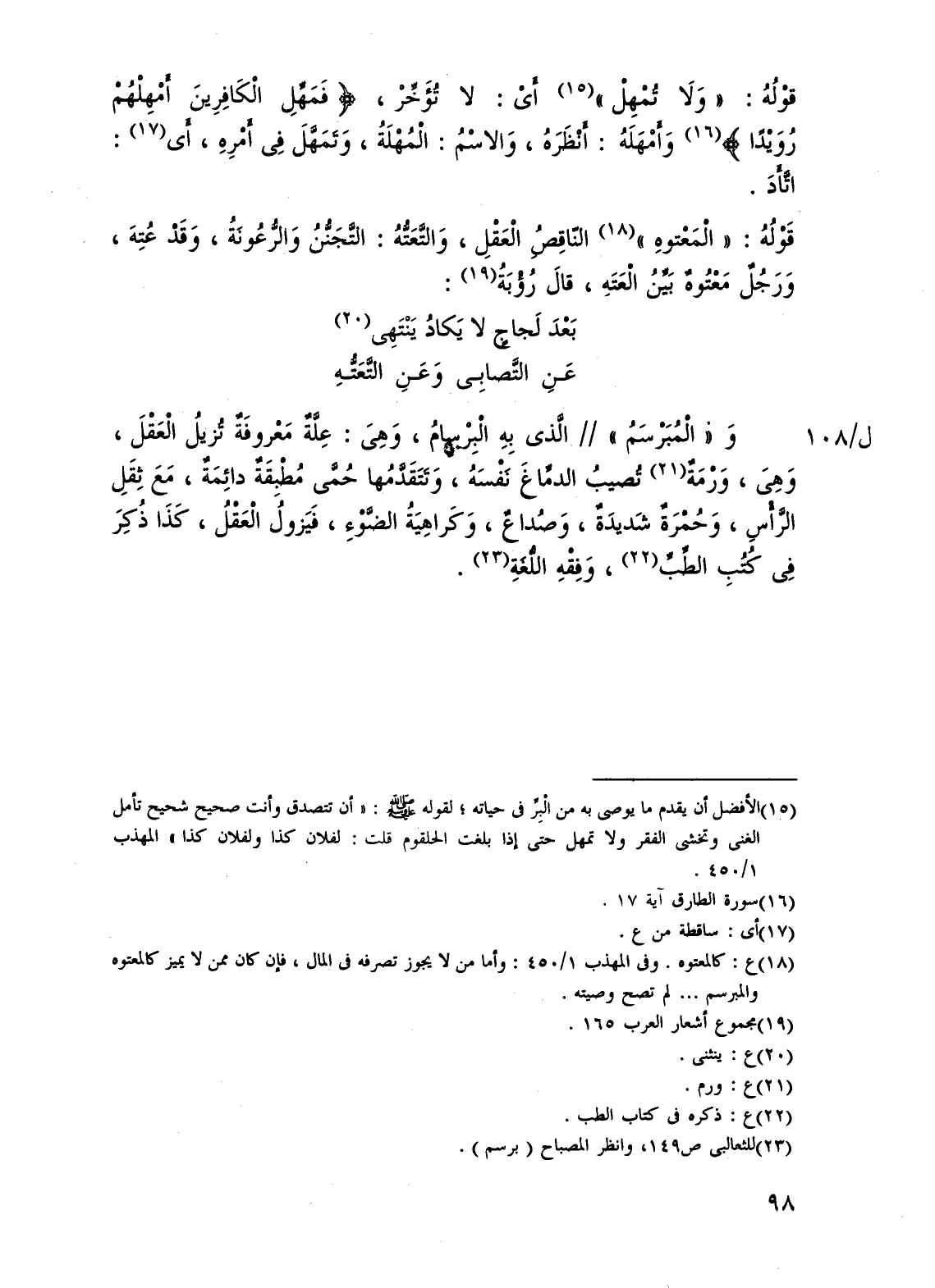 (¬18) ع: كالمعتوه. وفى المهذب 1/ 450: وأما من لا يجوز تصرفه فى المال، فإن كان ممن لا يميز كالمعتوه والمبرسم. . . لم تصح وصيته.