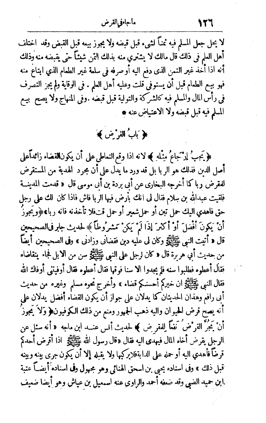 "يجب إرجاع مثله"لأنه إذا وقع التعاطي على أن يكون القضاء زائدا على أصل الدين فذلك هو الربا بل قد ورد ما يدل على أن مجرد الهدية من المستقرض للمقرض ربا كما أخرجه البخاري عن أبي بردة بن أبي موسى قال: "قدمت المدينة فلقيت عبد الله بن سلام فقال لي: إنك بأرض فيها الربا فاش فإذا كان لك على رجل حق فأهدى إليك حمل تبن أو حمل شعير أو حمل قت فلا تأخذنه فإنه ربا " "ولا يجوز أن يكون أفضل أو أكثر إذا لم يكن مشروطا"لحديث جابر في الصحيحين قال: "أتيت النبي صلى الله عليه وسلم وكان لي عليه دين فقضاني وزادني "وفي الصحيحين أيضا من حديث أبي هريرة قال: "كان لرجل على النبي صلى الله عليه وسلم سن من الإبل فجاء يتقاضاه فقال أعطوه فطلبوا سنه فلم يجدوا إلا سنا فوقها فقال: أعطوه فقال: أوفيتني أوفاك الله فقال النبي صلى الله عليه وسلم: "إن خيركم أحسنكم قضاء " وأخرج نحوه مسلم وغيره من حديث أبي رافع وهذان الحديثان كما يدلان على جواز أن يكون القضاء أفضل يدلان على أنه يصح قرض الحيوان وإليه ذهب الجمهور ومنه من ذلك الكوفيون "ولا يجوز أن يجر القرض نفعا للمقرض"لحديث أنس عند ابن ماجه "أنه سئل عن الرجل يقرض أخاه المال فيهدي إليه فقال: قال رسول الله صلى الله عليه وسلم: "إذا أقرض أحدكم قرضا فأهدى إليه أو حمله على الدابة فلا يركبها ولا يقبله إلا أن يكون جرى بينه وبينه قبل ذلك" وفي إسناده يحيى بن إسحق الهنائي وهو مجهول وفي إسناده أيضا عتبة ابن حميد الضبي وقد ضعفه أحمد والراوي عنه إسمعيل بن عياش وهو أيضا ضعيف