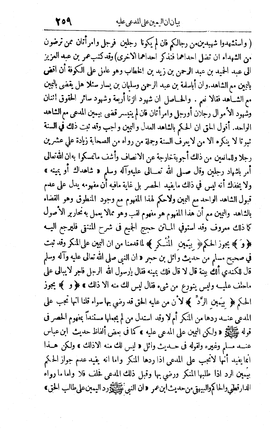 {وَاسْتَشْهِدُوا شَهِيدَيْنِ مِنْ رِجَالِكُمْ فَإِنْ لَمْ يَكُونَا رَجُلَيْنِ فَرَجُلٌ وَامْرَأَتَانِ مِمَّنْ تَرْضَوْنَ مِنَ الشُّهَدَاءِ أَنْ تَضِلَّ إِحْدَاهُمَا فَتُذَكِّرَ إِحْدَاهُمَا الْأُخْرَى} وقد كتب عمر بن عبد العزيز إلى عبد الحميد بن عبد الرحمن بن زيد بن الخطاب وهو عامل على الكوفة أن اقض باليمين مع الشاهد وإن أبا سلمة بن عبد الرحمن وسليمان بن يسار سئلا هل يقضى باليمين مع الشاهد فقالا نعم. والحاصل أن شهود الزنا أربعة وشهود سائر الحقوق اثنان وشهود الأموال رجلان أو رجل وامرأتان فإن لم يتيسر قضي بيمين المدعي مع الشاهد الواحد