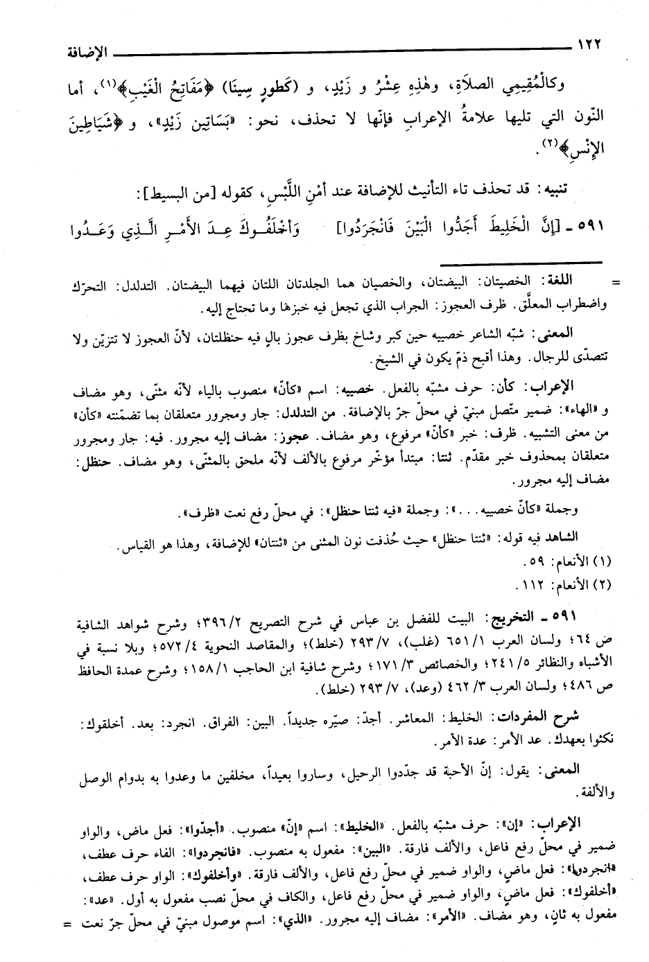 الإعراب: "إن": حرف مشبه بالفعل. "الخليط": اسم "إن" منصوب. "أجدوا": فعل ماض، والواو ضمير في محل رفع فاعل، والألف فارقة. "البين": مفعول به منصوب. "فانجردوا": الفاء حرف عطف، "فانجردوا": فعل ماضٍ، والواو ضمير في محل رفع فاعل، والألف فارقة. "وأخلفوك": الواو حرف عطف، "أخلفوك": فعل ماض، والواو ضمير في محل رفع فاعل، والكاف في محل نصب مفعول به أول. "عد": مفعول به ثان، وهو مضاف. "الأمر" مضاف إليه مجرور. "الذي": اسم موصول مبني في محل جر نعت =