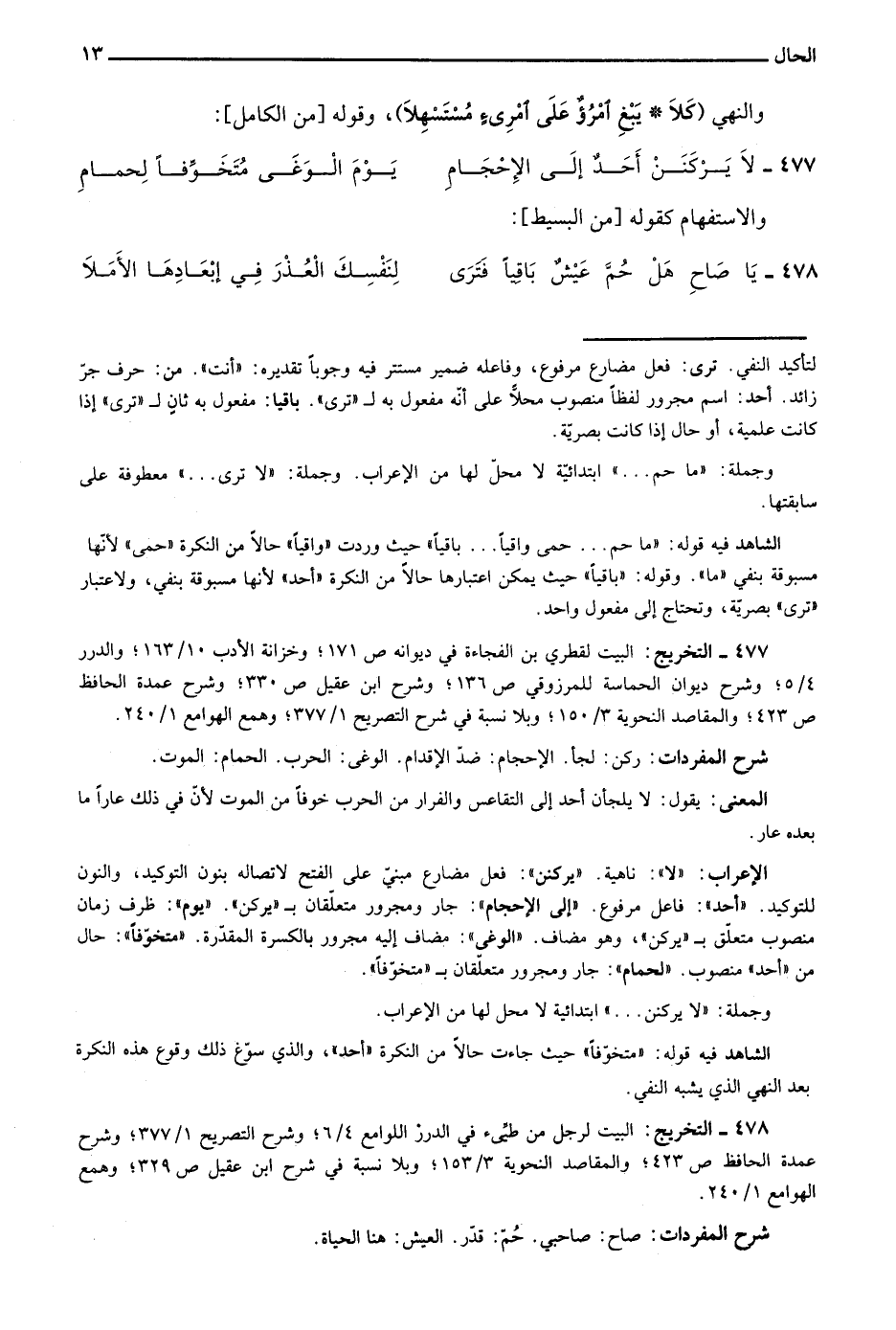 والنهي "كلا يبغ امرؤ على امرئ مستشهلا"، وقوله "من الكامل":