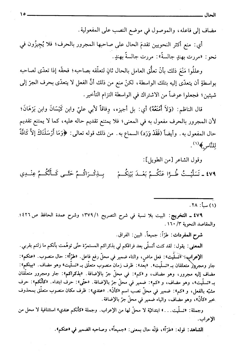 479- التخريج: البيت بلا نسبة في شرح التصريح 1/ 379؛ وشرح عمدة الحافظ ص426؛ والمقاصد النحوية 3/ 160.