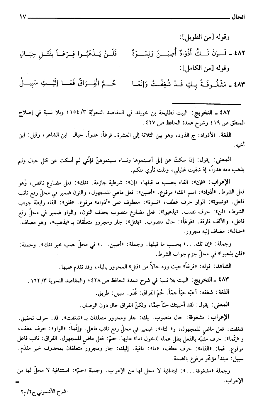483- التخريج: البيت بلا نسبة في شرح عمدة الحافظ ص428؛ والمقاصد النحوية 3/ 162.